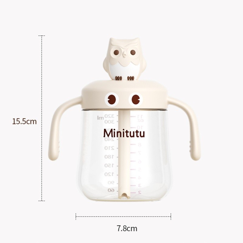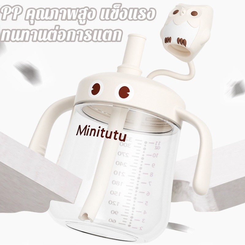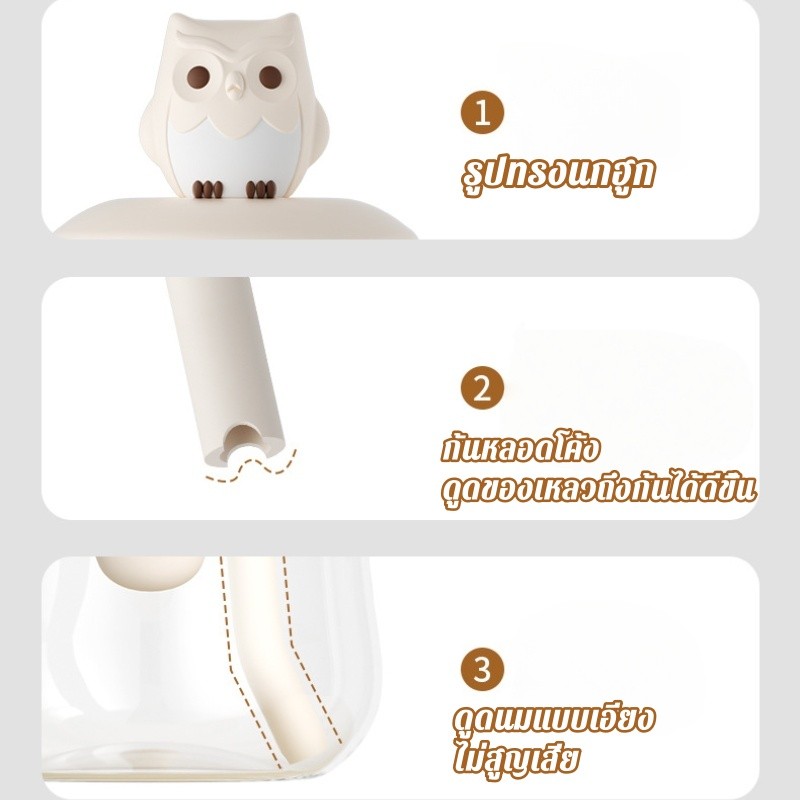 พร้อมส่ง ขวดนมเด็ก 320ml นกฮูกน่ารัก ทนความร้อนสูง PP แก้วหัดดื่มกันสำลัก