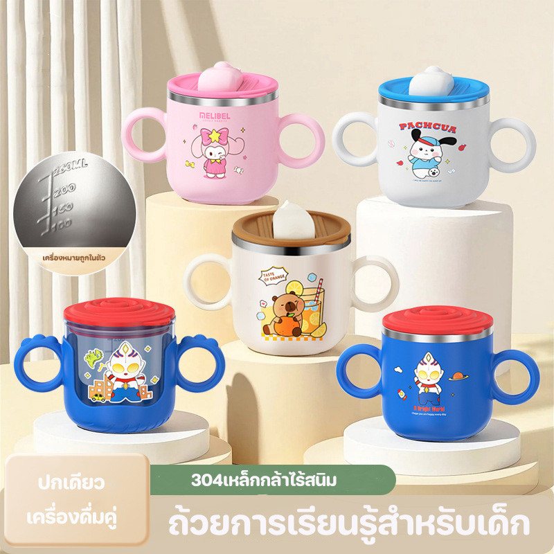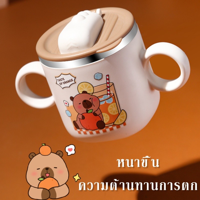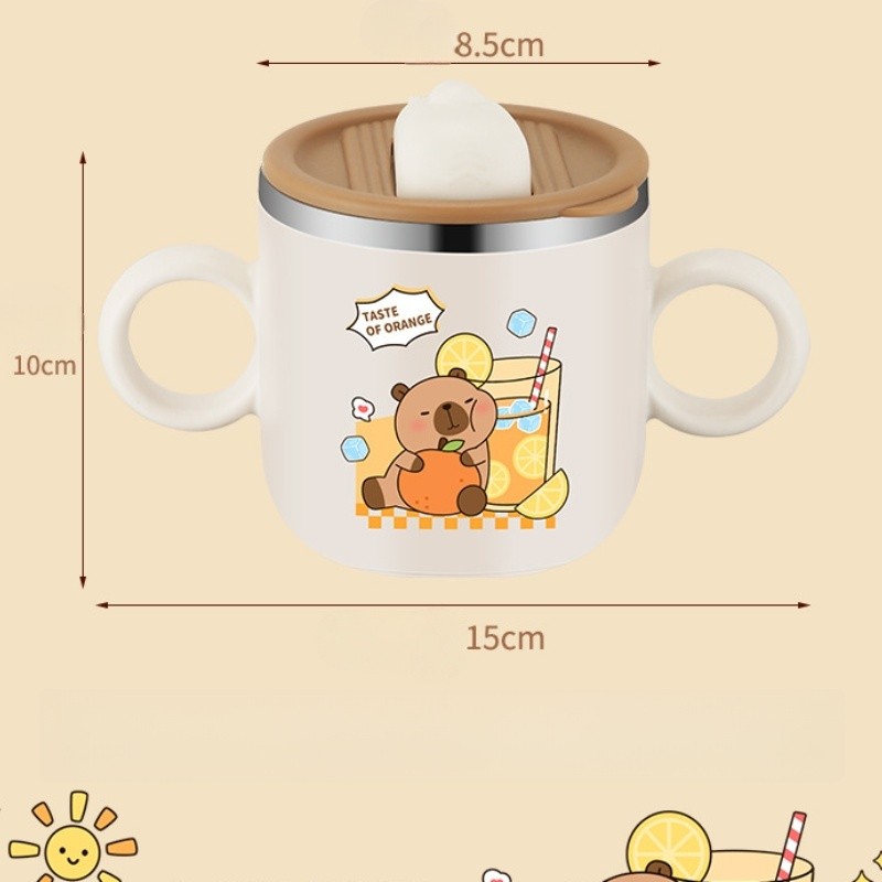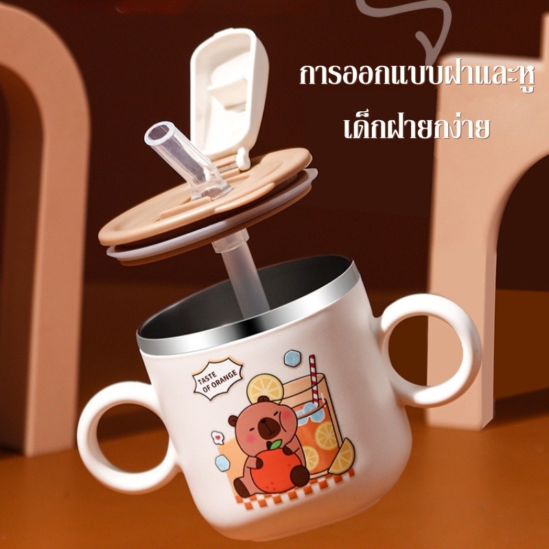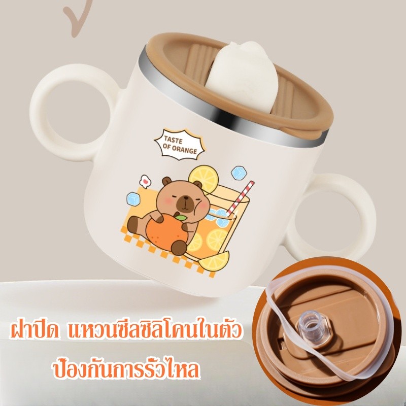 ถ้วยหัดดื่ม ถ้วยดื่มสําหรับเด็ก ถ้วยการเรียนรู้สําหรับเด็ก Capybara 280ML การ์ตูนน่ารัก 304 วัสดุสแตนเลส ถ้วยฝึกดูดหลอด