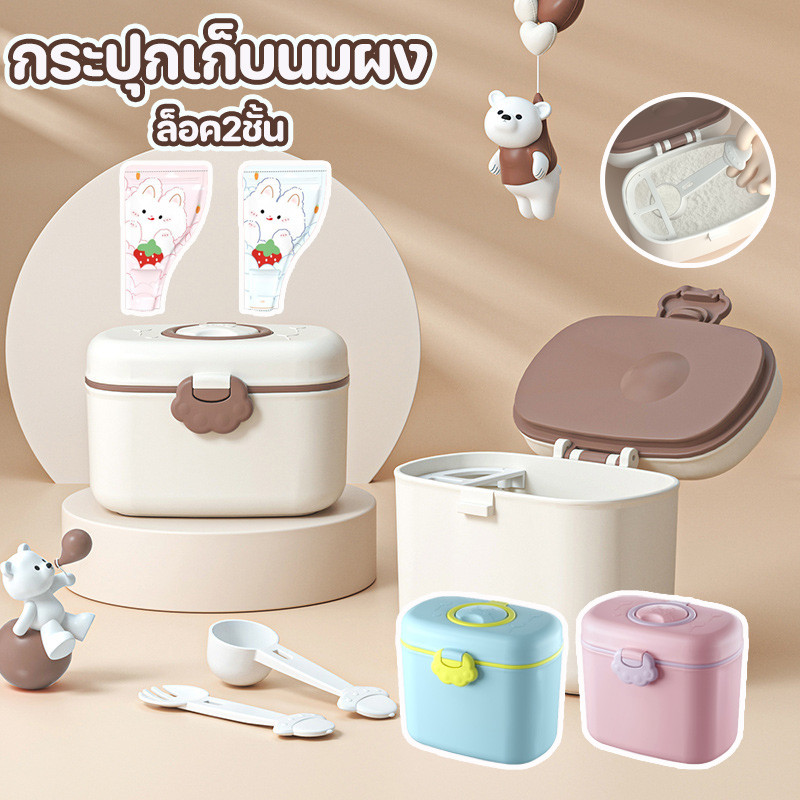 พร้อมจัดส่ง กระปุกเก็บนมผง กล่องใส่ถนอมอาหาร กล่องเก็บนมผงสุญญากาศ ล็อค2ชั้น แบบพกพา กล่องเก็บอาหาร