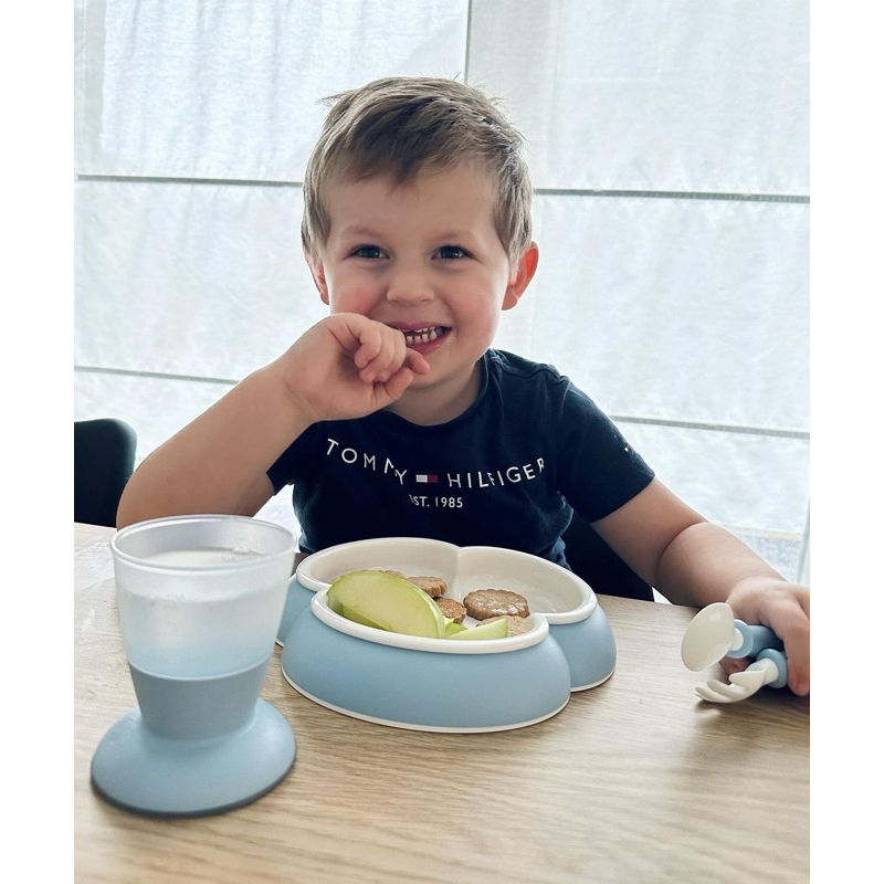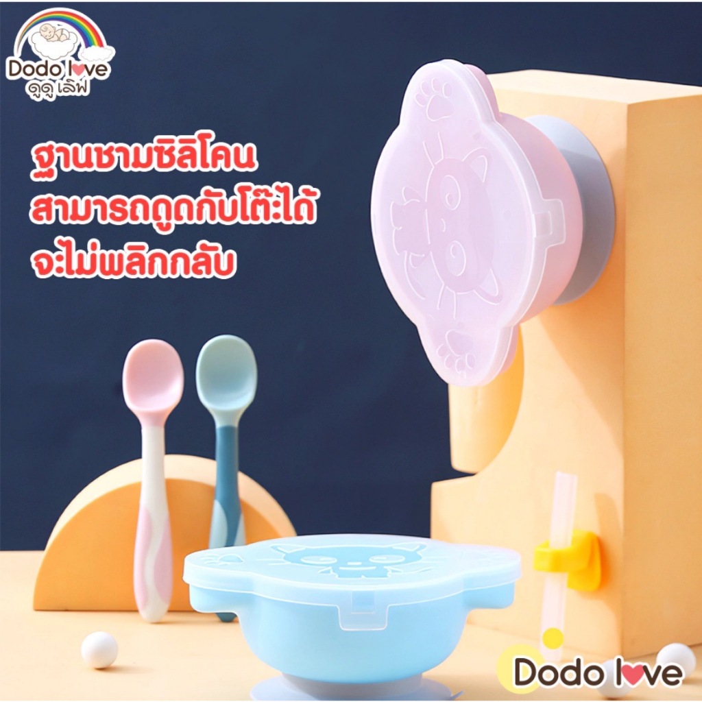 ชามซิลิโคนดูดโต๊ะ แบ่ง 3 ช่อง ชามใส่อาหารสำหรับเด็ก มีฝาปิด พร้อมช้อนซิลิโคนเด็ก ปรับงอได้ 360 องศาและหลอดดูด ดูดูเลิฟ