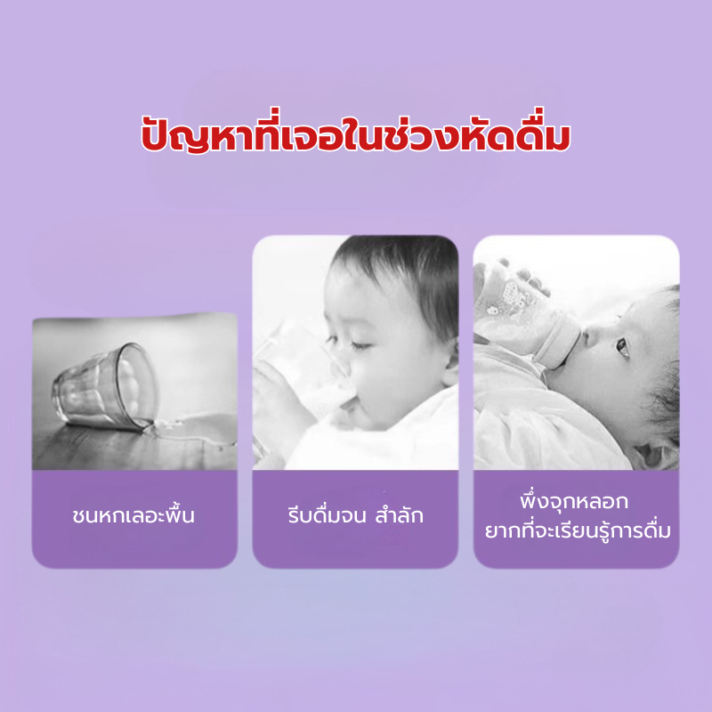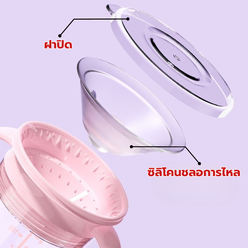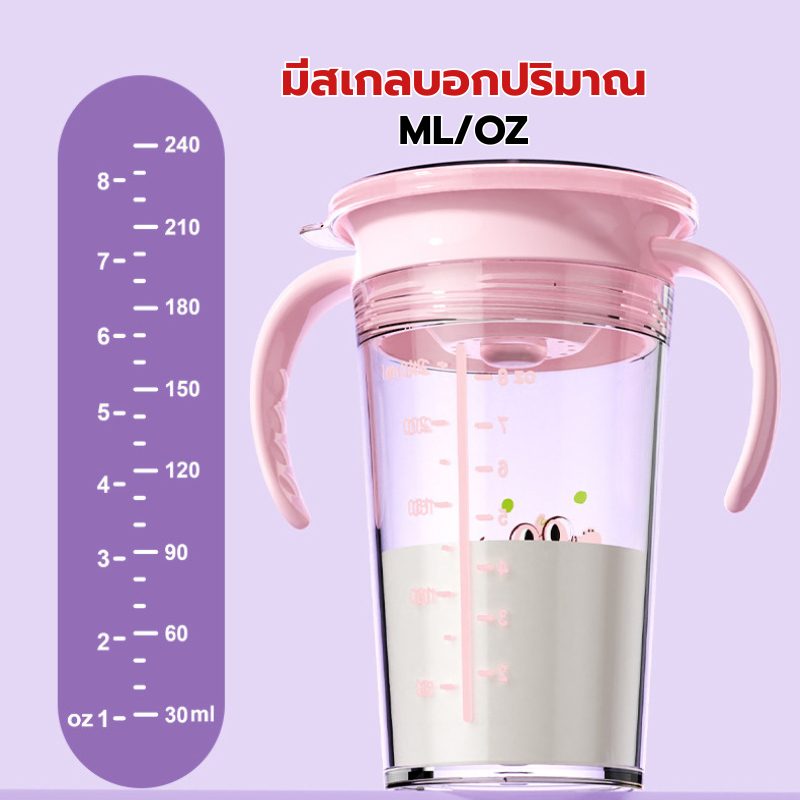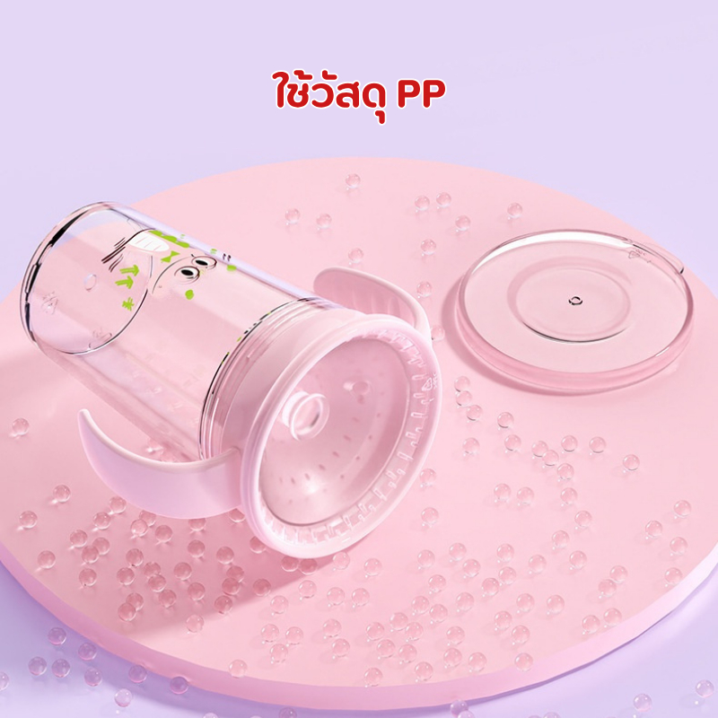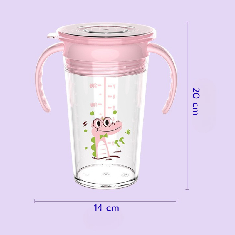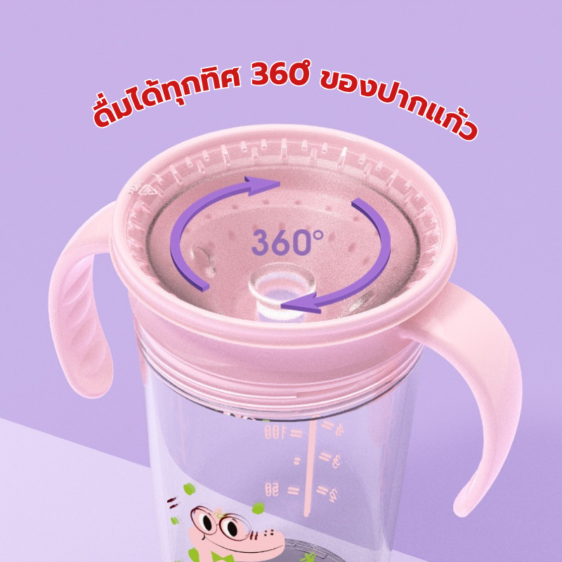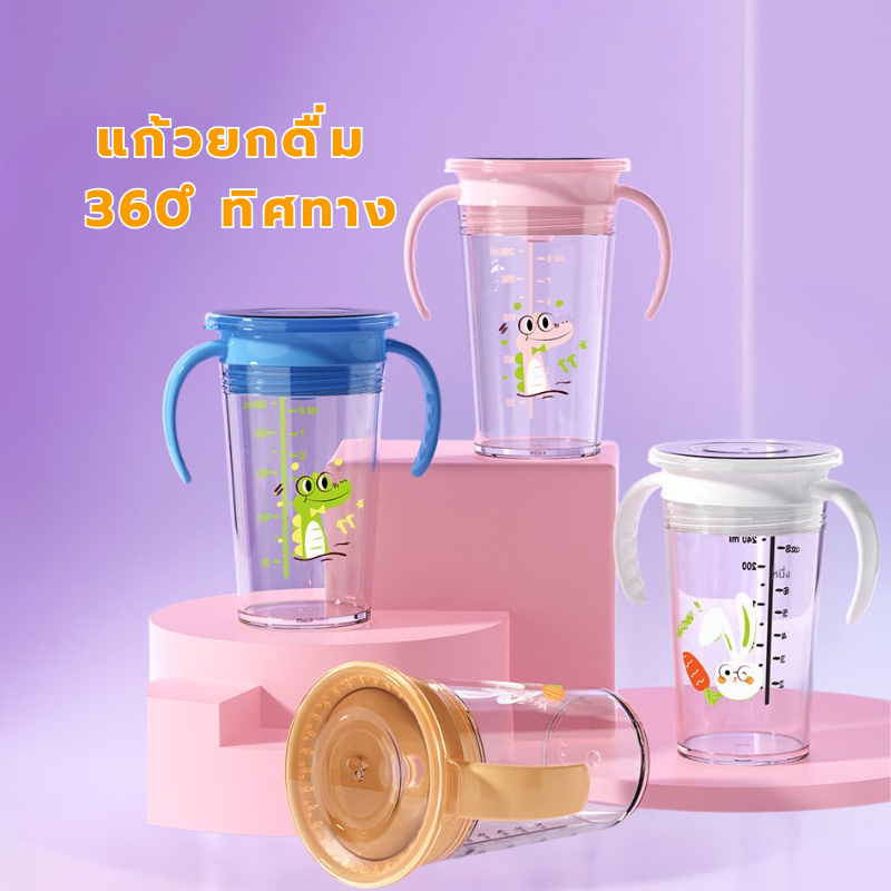 ถ้วยหัดดื่ม 360 องศา กันน้ำหก มีหูจับและฝาปิด แก้วหัดดื่มสำหรับเด็ก