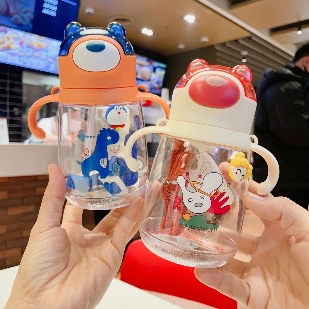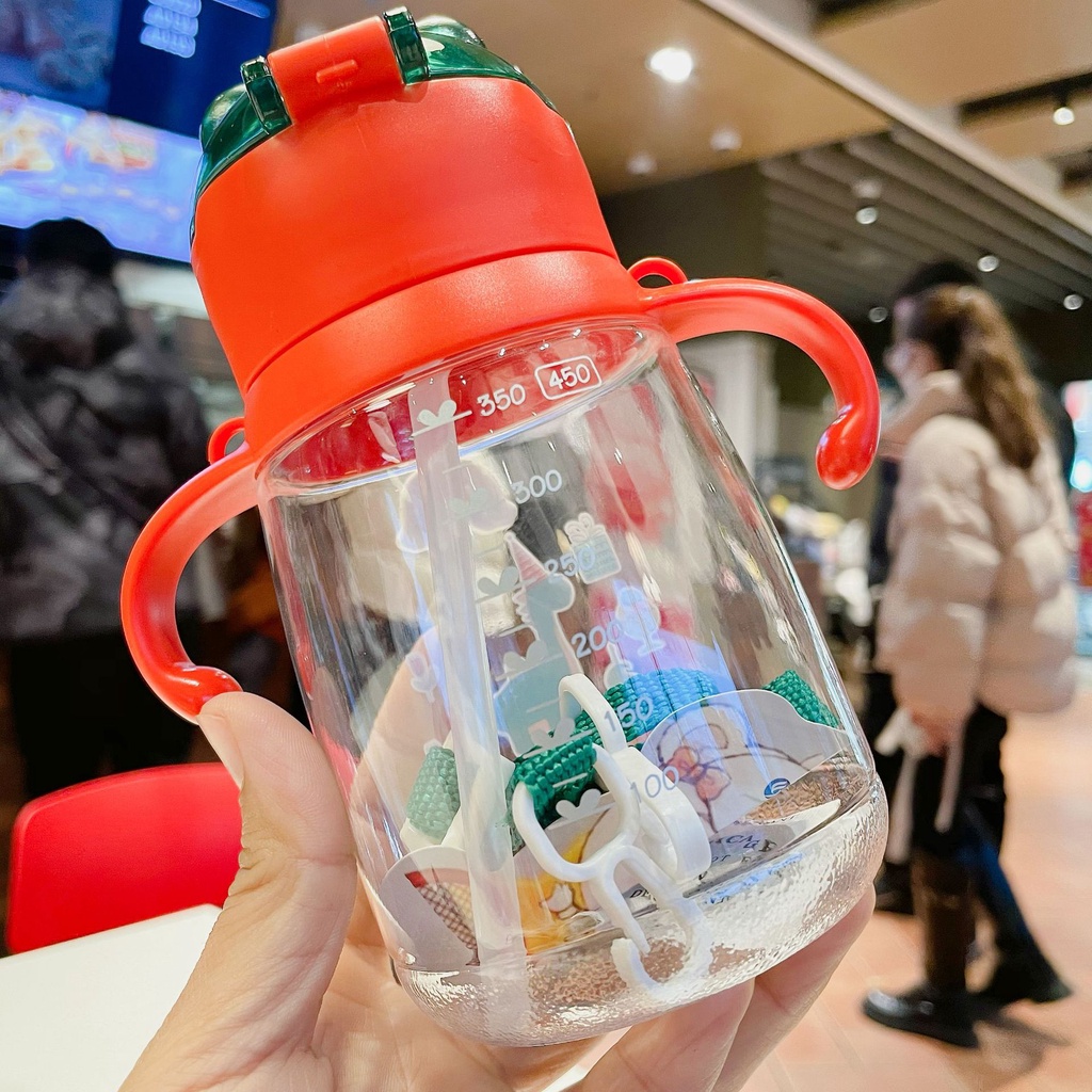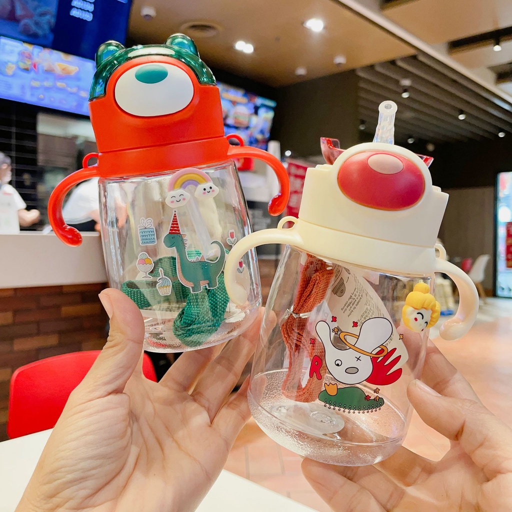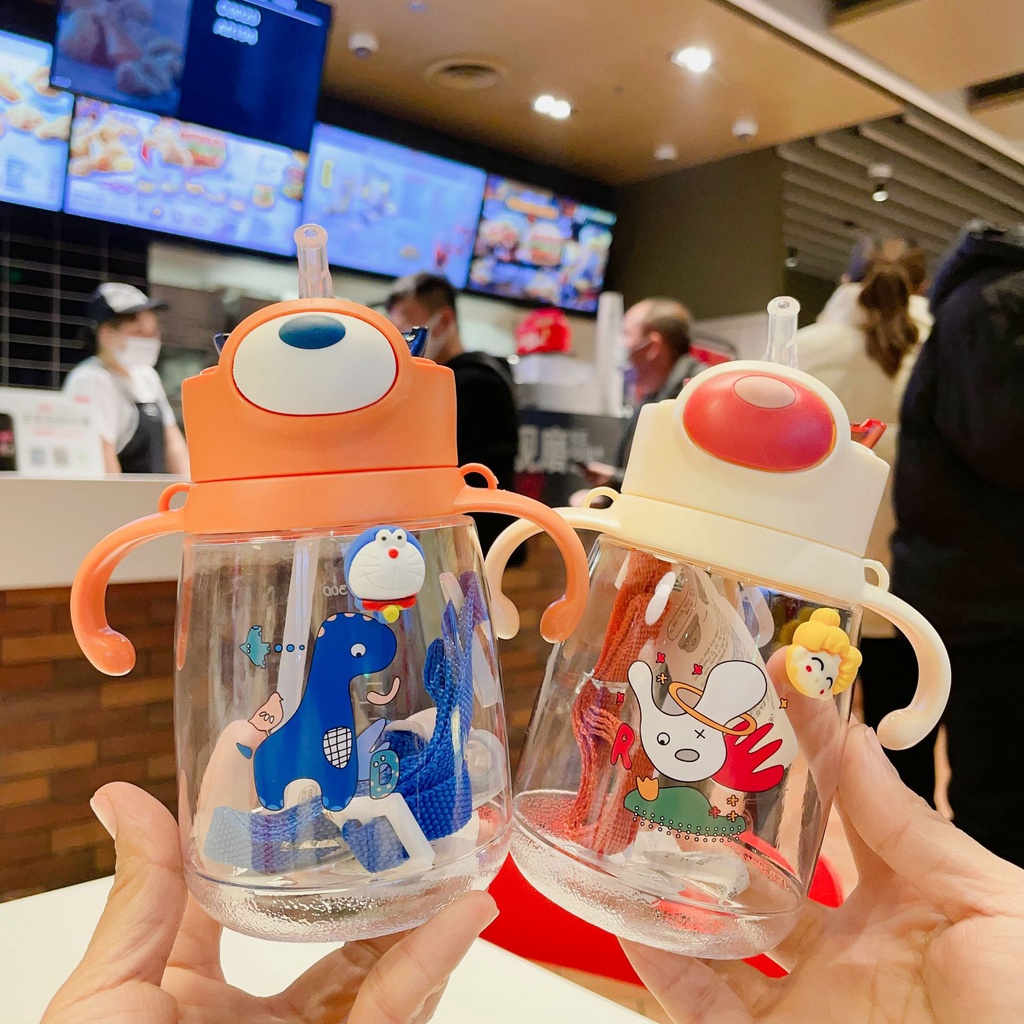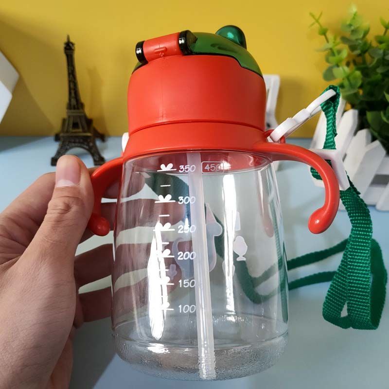 แก้วหัดดื่ม แก้วน้ำเด็ก ตกไม่แตก หลอดเด้งกัดไม่ขาด พกไปโรงเรียนได้ ด้ามจับถนัดมือ 450ml
