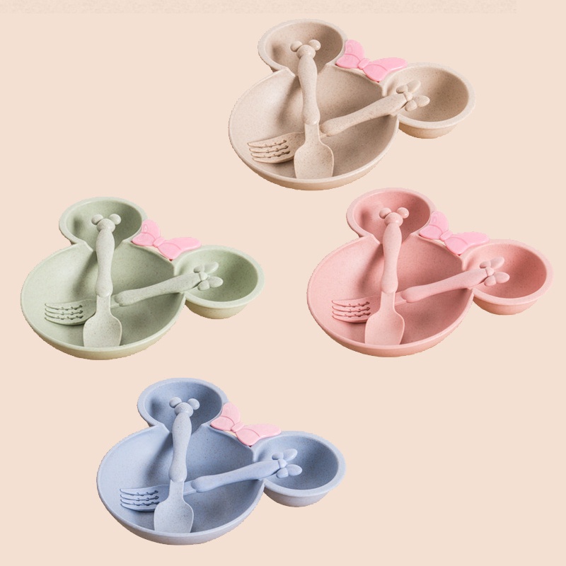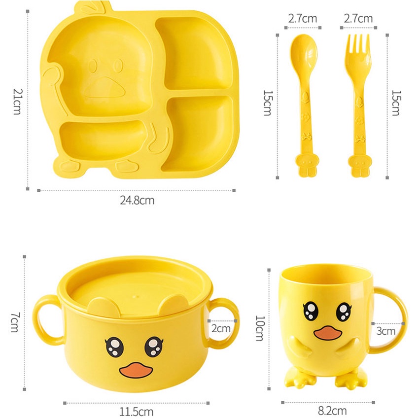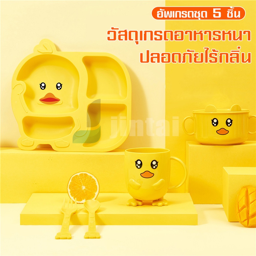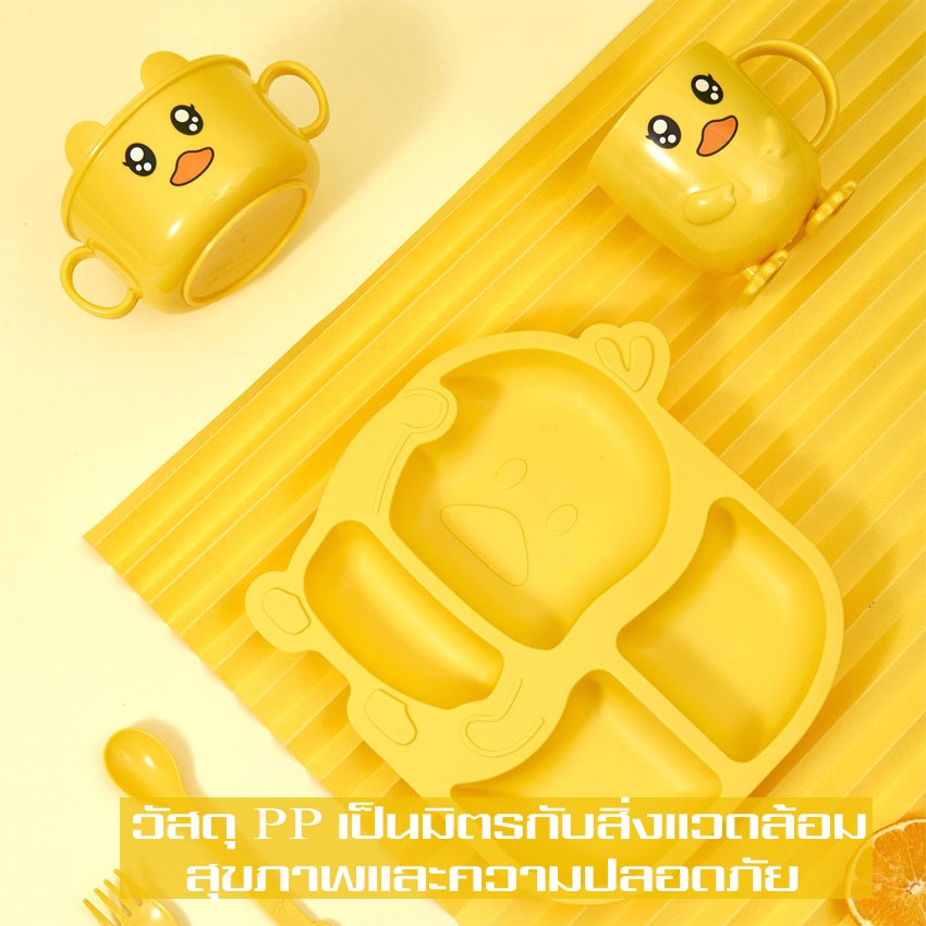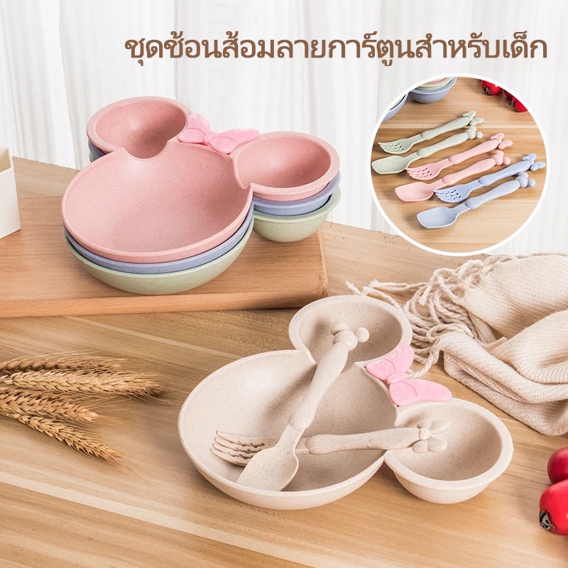 เซ็ตถาดหลุมกินข้าวเด็ก จานหลุม 5 ชิ้น เซ็ตทานข้าวเด็ก เซ็ตจานหลุมสัตว์น่ารัก เซ็ตจานฟางข้าวสาลี จานเด็ก ชุดกินข้าวเด็ก