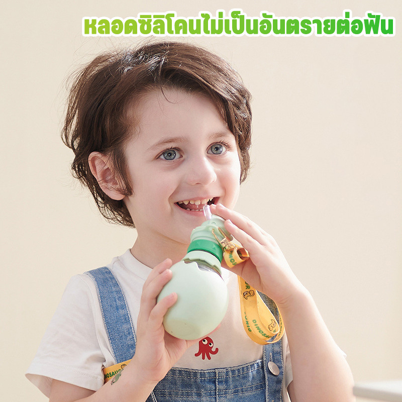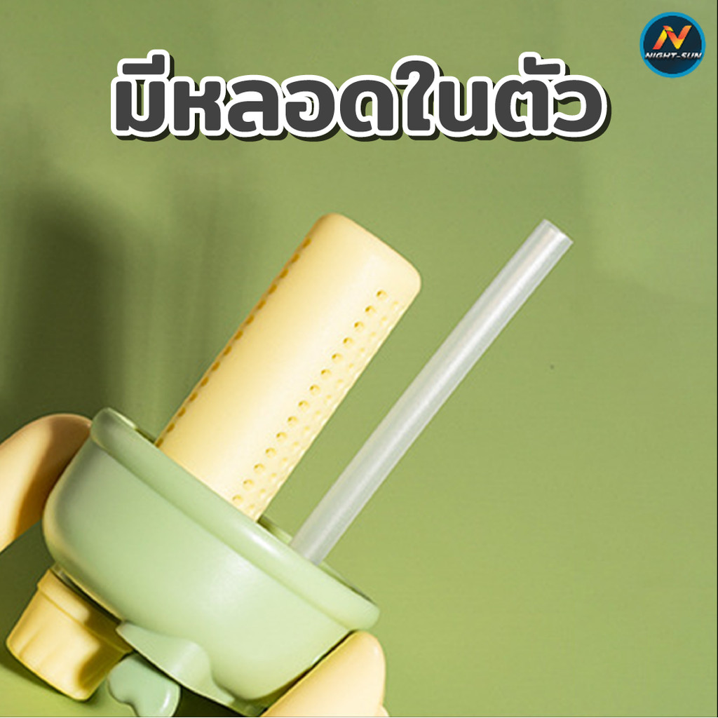 แก้วหัดดื่ม มีหูจับ หลอดซิลิโคนนิ่มมีลูกตุ้มกันสำลัก กระติกน้ำหลอดดูด ลายน่ารัก แก้วน้ำเด็ก ขนาด260ml.