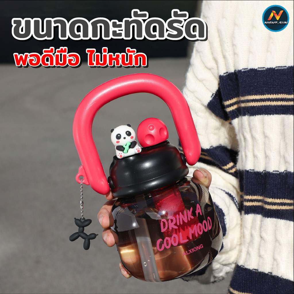 ส่งด่วน🔥แก้วน้ำพลาสติก สีพาสเทล กระบอกน้ำ ทรงน้ำเต้า แก้วน้ำหลอดดูด พร้อมสายหิ้ว ดีไซน์น่ารัก ขนาด 800ml มี 4 สีให้เลือก