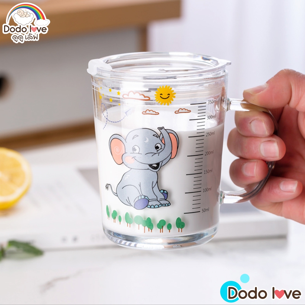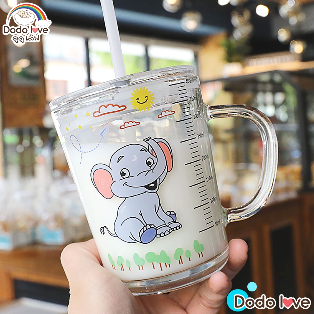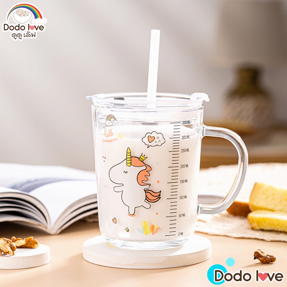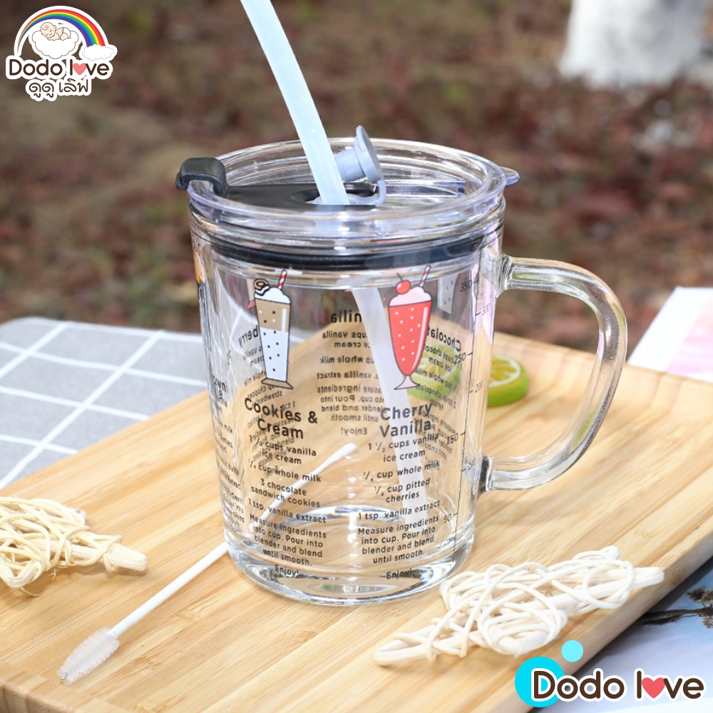 แก้วน้ำใส พร้อมหลอดดูด แก้วน้ำสำหรับเด็กมีฝาปิดขอบยางซิลิโคนจุกปิด 350 ml. แก้วใส หนาพิเศษ พร้อมฝาปิด แก้วกันหก
