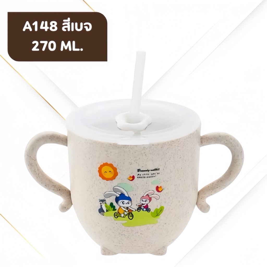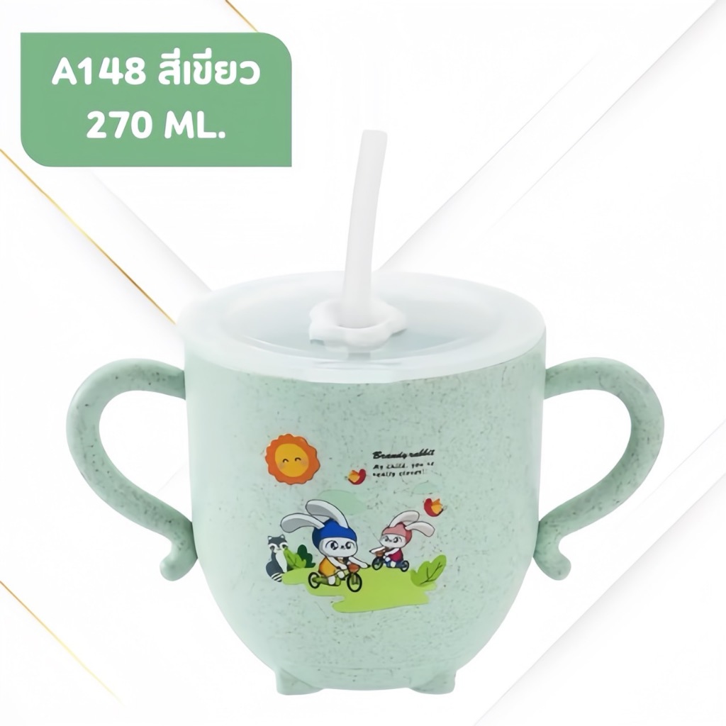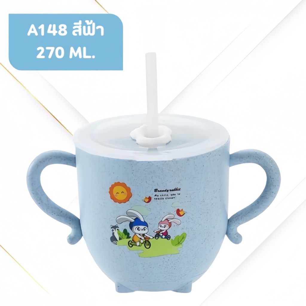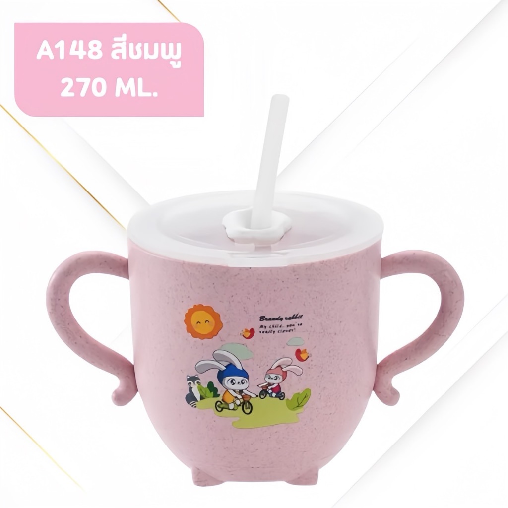 แก้วหัดดื่ม 270ml พร้อมหลอด มีฝาปิด(ฟางข้าว)
