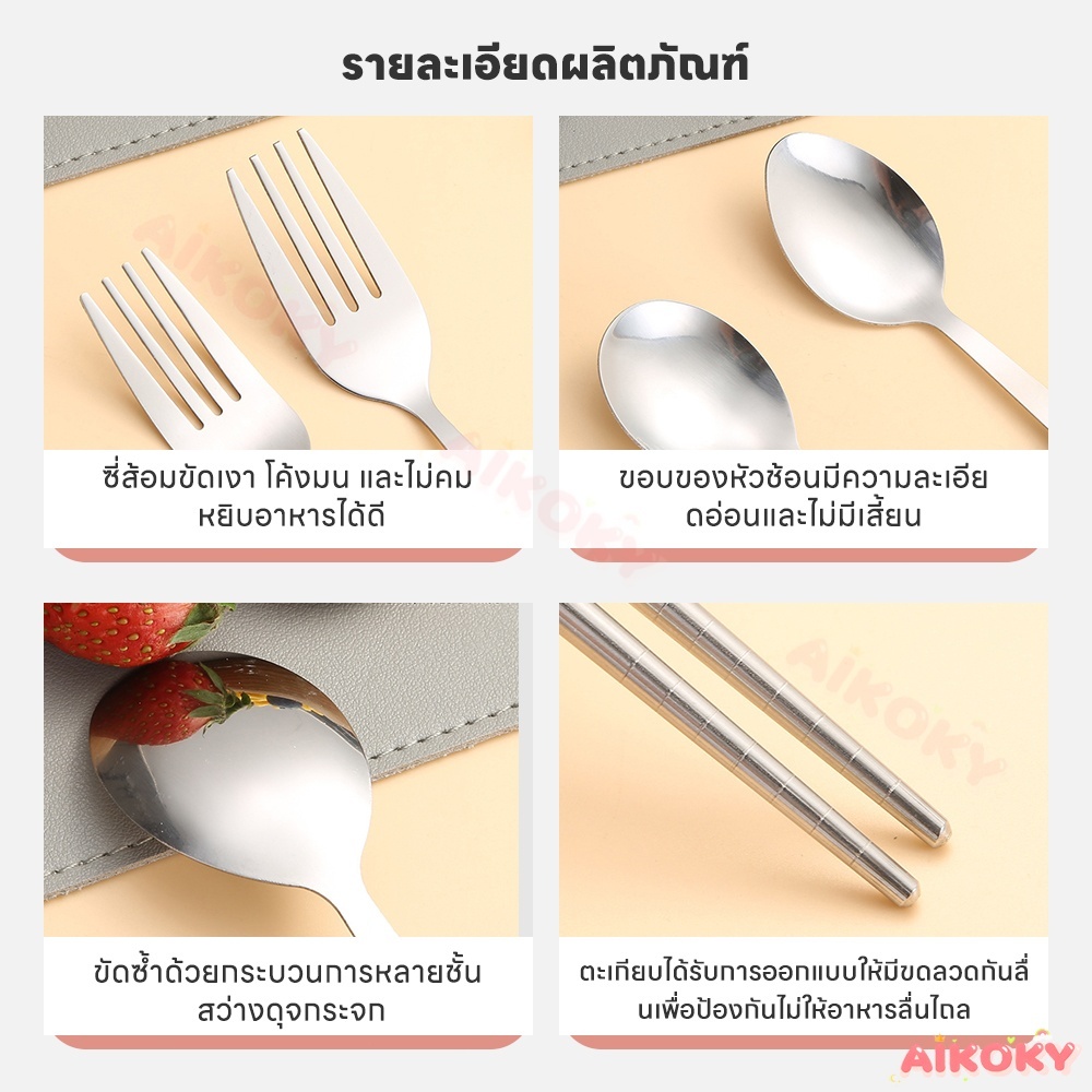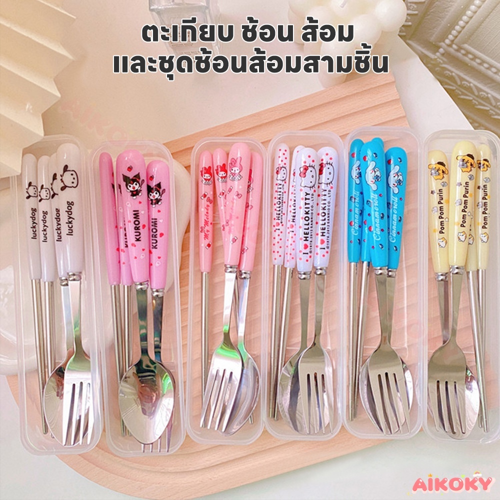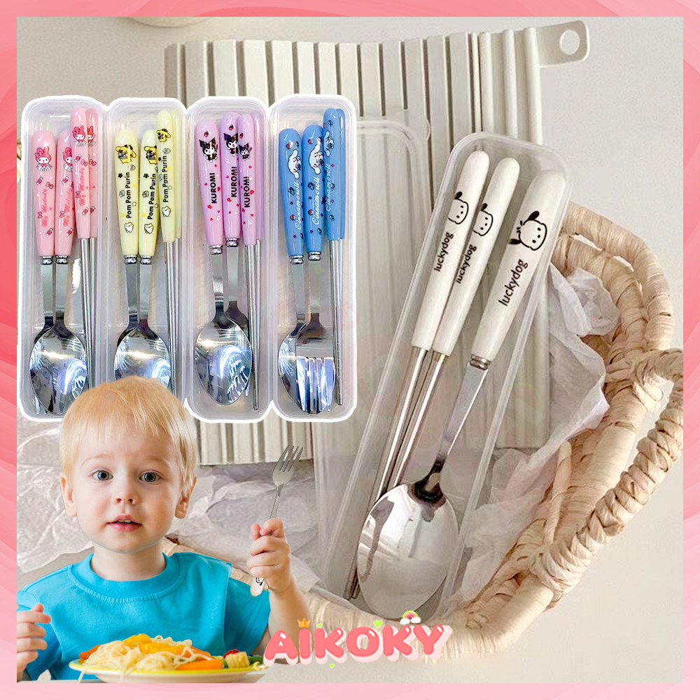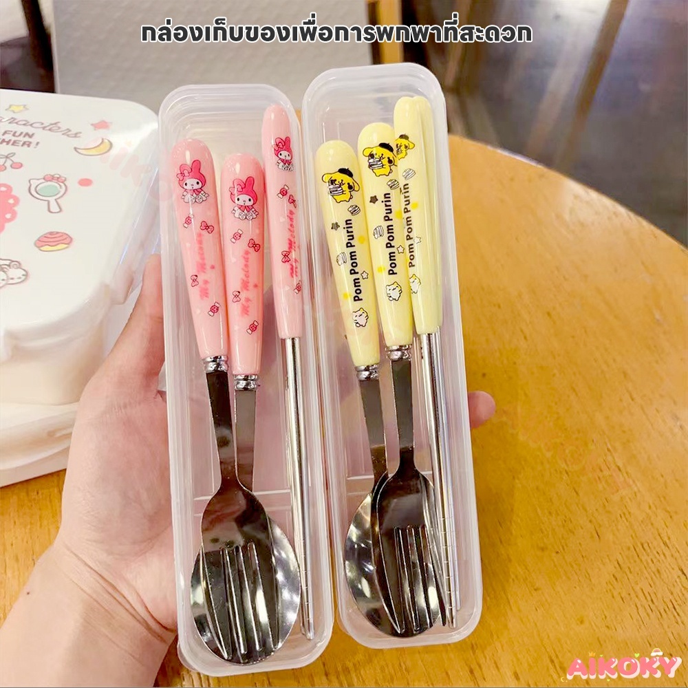 🚚AIKOKY ชุดช้อนพกพา ช้อนกับส้อม ชุดช้อนส้อมเด็กอนุบาล ตะเกียบ ช้อน และส้อม ชุดช้อนส้อมพกพา 3 ชิ้น พร้อมกล่องเก็บของ