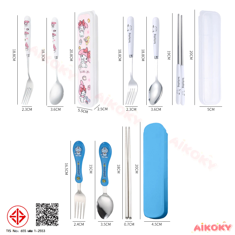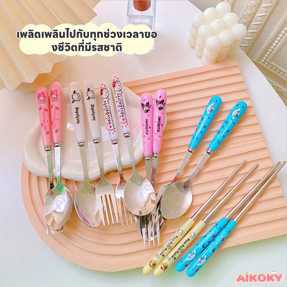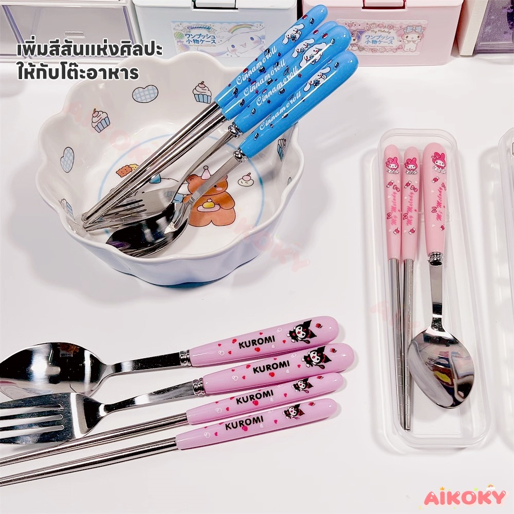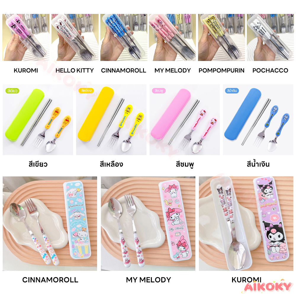 🚚AIKOKY ชุดช้อนพกพา ช้อนกับส้อม ชุดช้อนส้อมเด็กอนุบาล ตะเกียบ ช้อน และส้อม ชุดช้อนส้อมพกพา 3 ชิ้น พร้อมกล่องเก็บของ