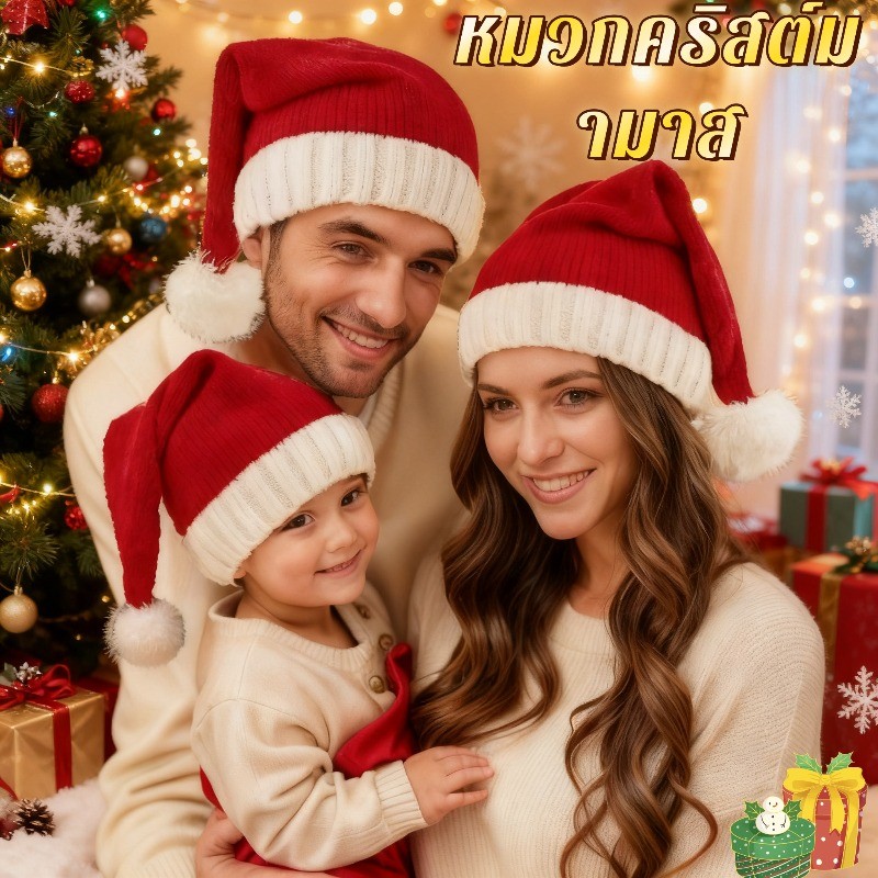 วันคริสต์มาสแต่งตัวหมวกคริสต์มาสถุงมือซานตาคลอสหมวกข้ามพรมแดนระเบิดพ่อแม่เด็กหมวกคริสต์มาส