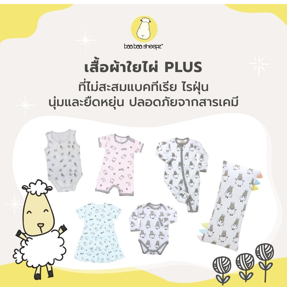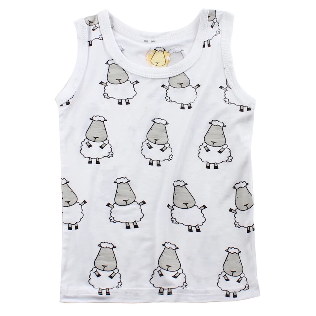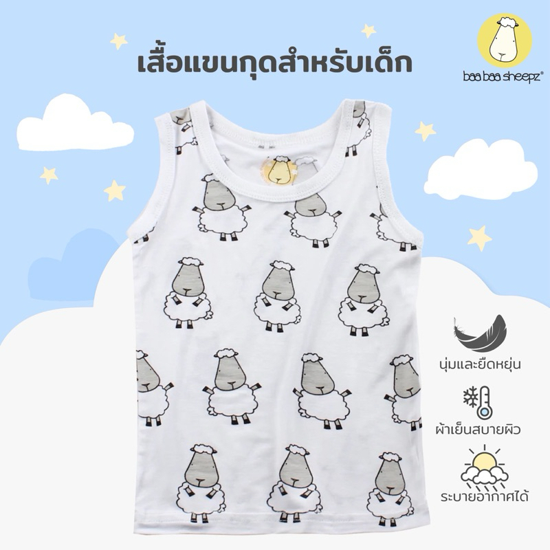 Baa baa sheepz เสื้อเด็ก เสื้อแขนกุด สีขาว ลาย Big Sheepz ผ้าใย่ไผ่Plus สำหรับ อายุ 0เดือน-24เดือน