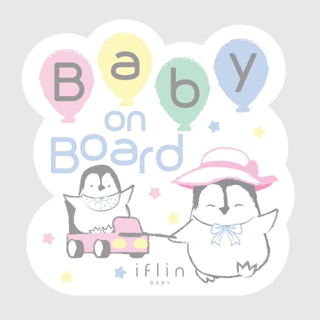 Iflin Baby – สติ๊กเกอร์ติดรถ “Baby on Board” – “Baby on Board” Car Sticker – ยี่ห้อ 3M ไม่ทิ้งคราบกาว ดีไซน์น่ารัก