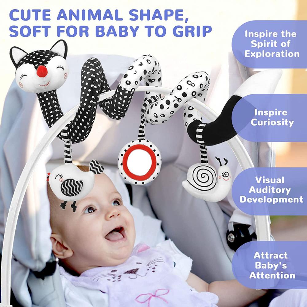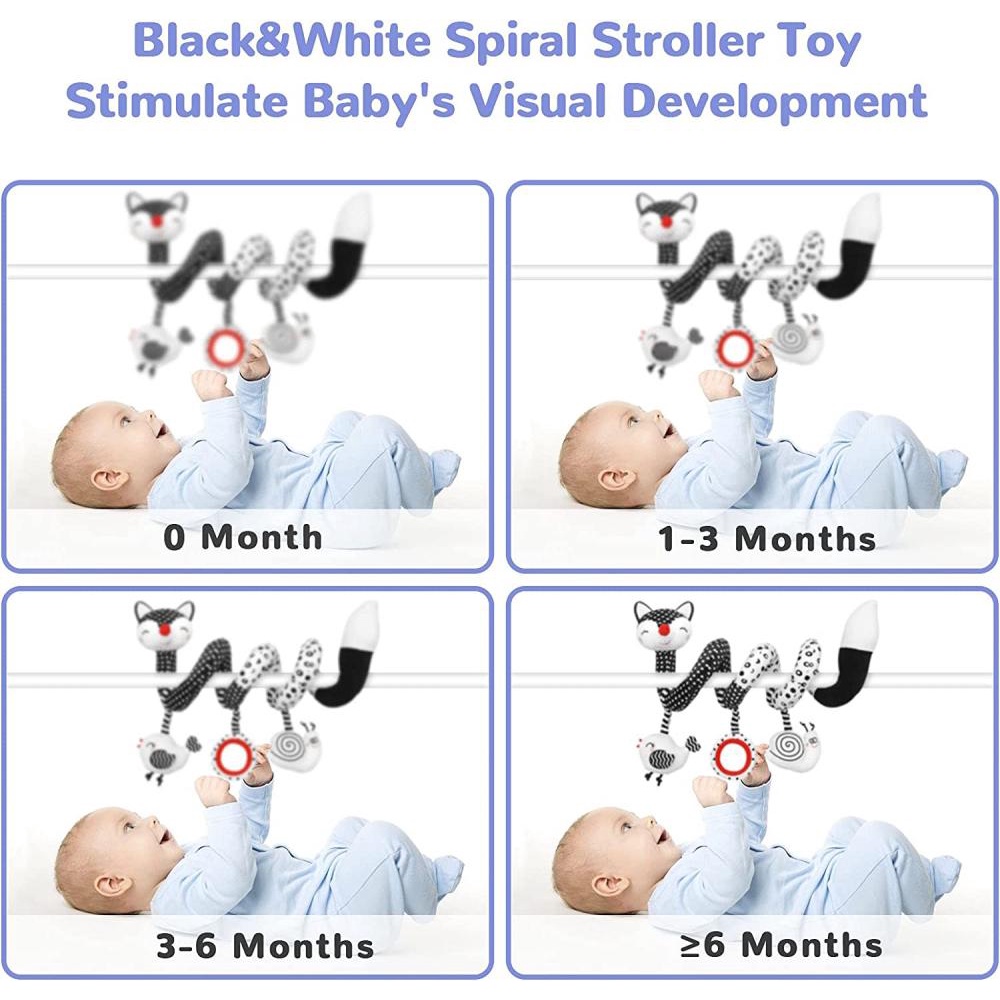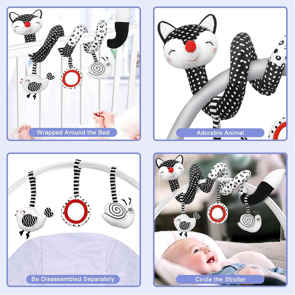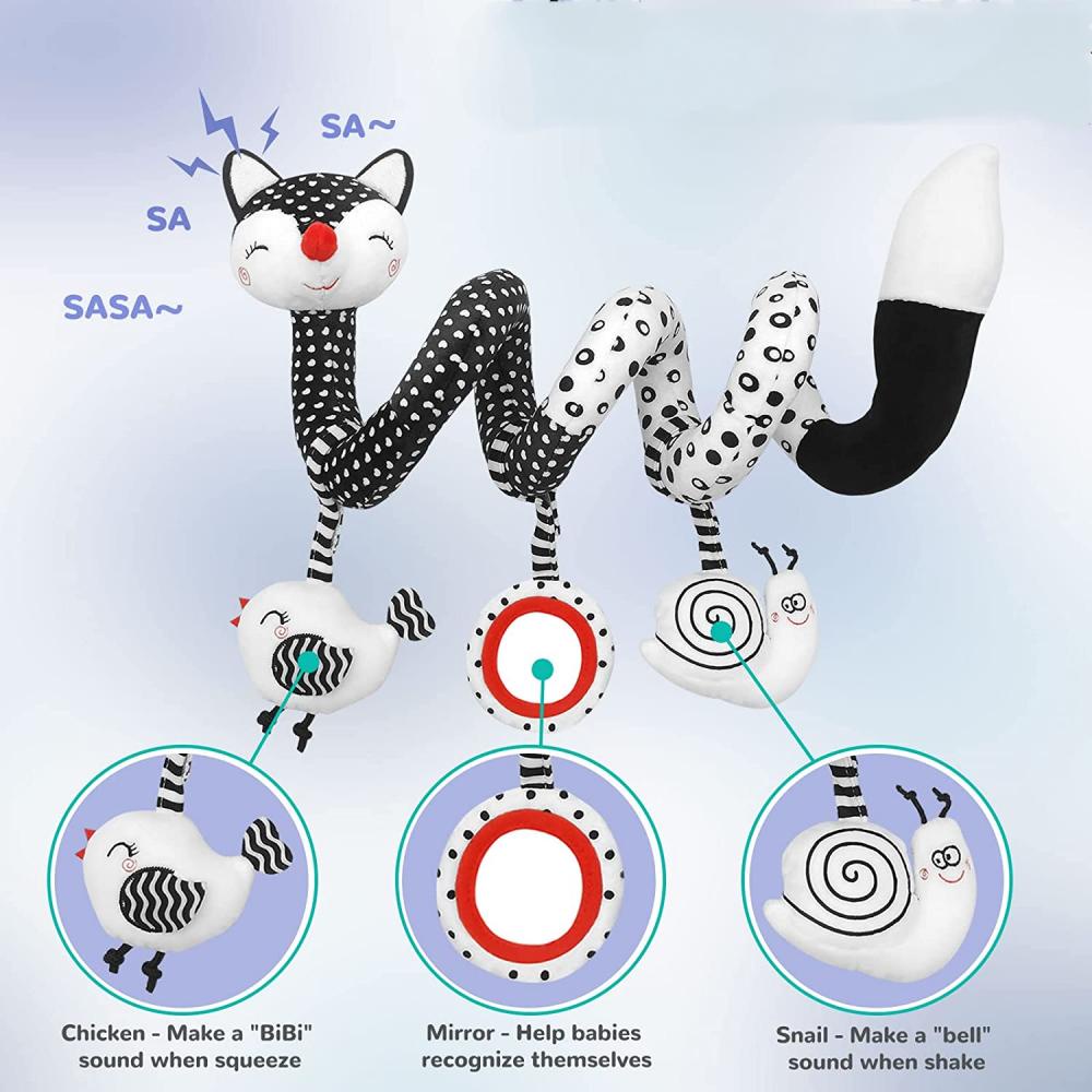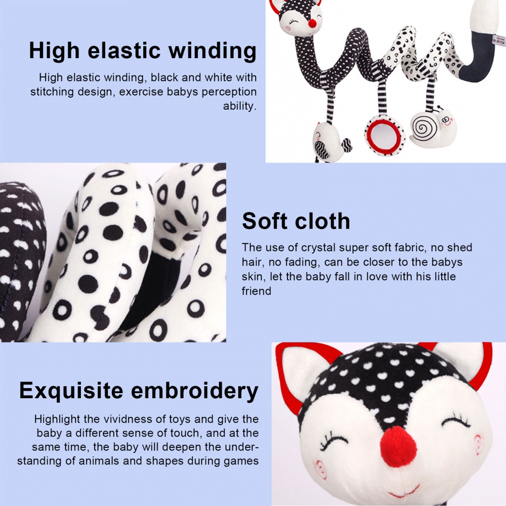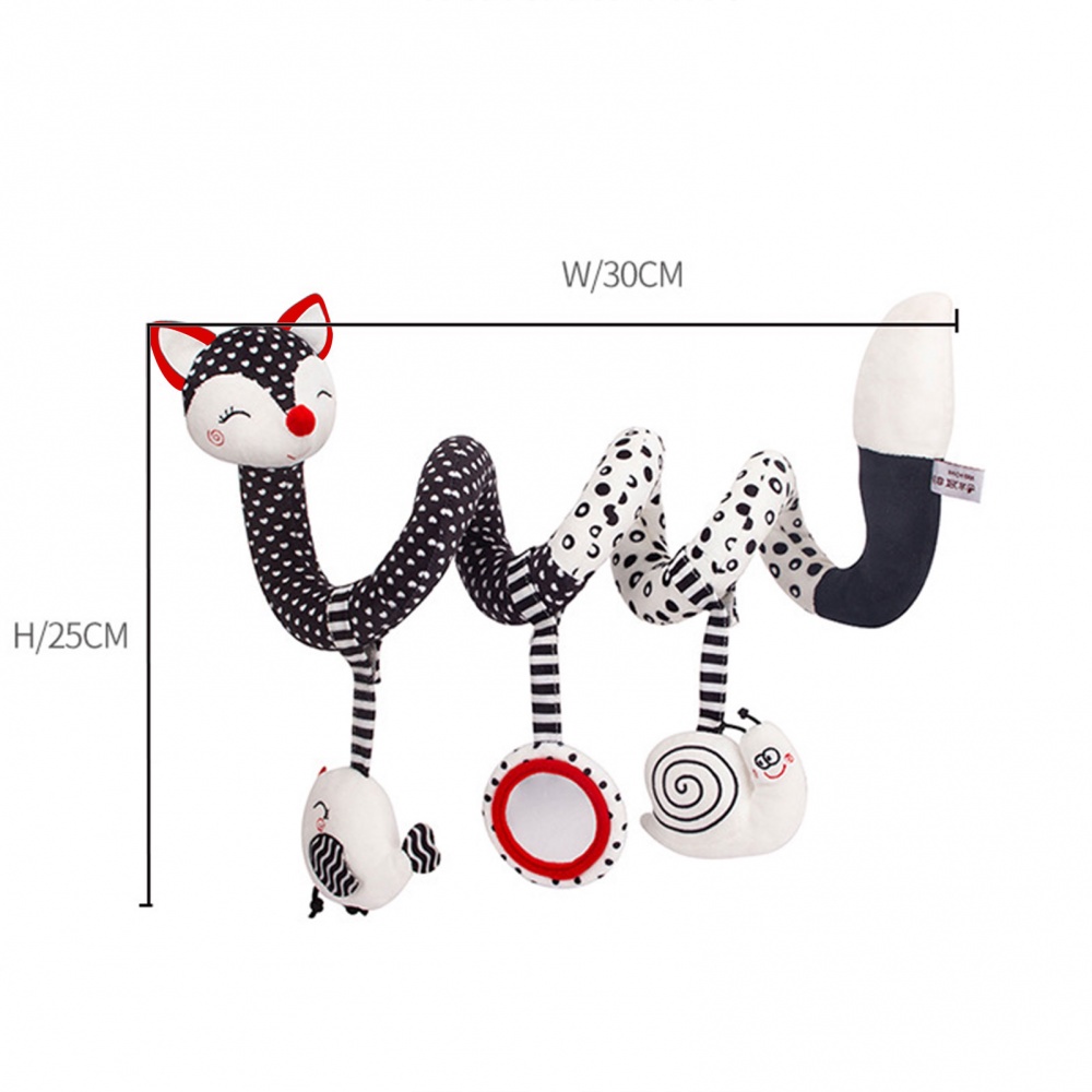 ของเล่นตุ๊กตาสุนัขจิ้งจอก แบบเกลียว สีดํา สีขาว สําหรับเด็กทารกแรกเกิด อายุ 0-12 เดือน