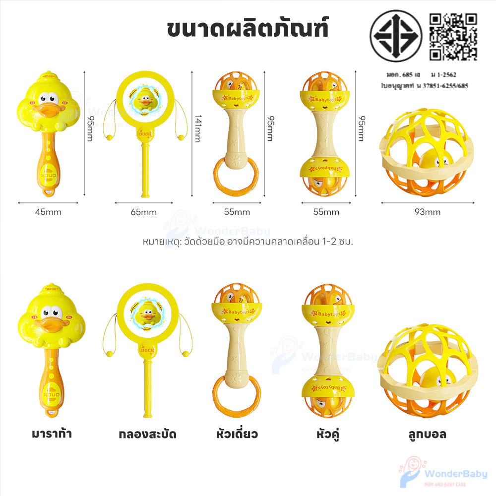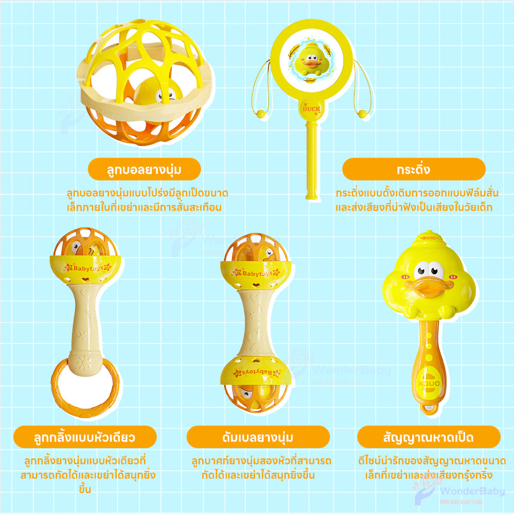 WONDERBABY ของเล่นทารก สร้างเสียง ของเล่นเสริมพัฒนาการเด็ก ของเล่นเขย่ามือ ยางกัดเด็ก