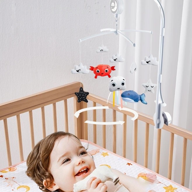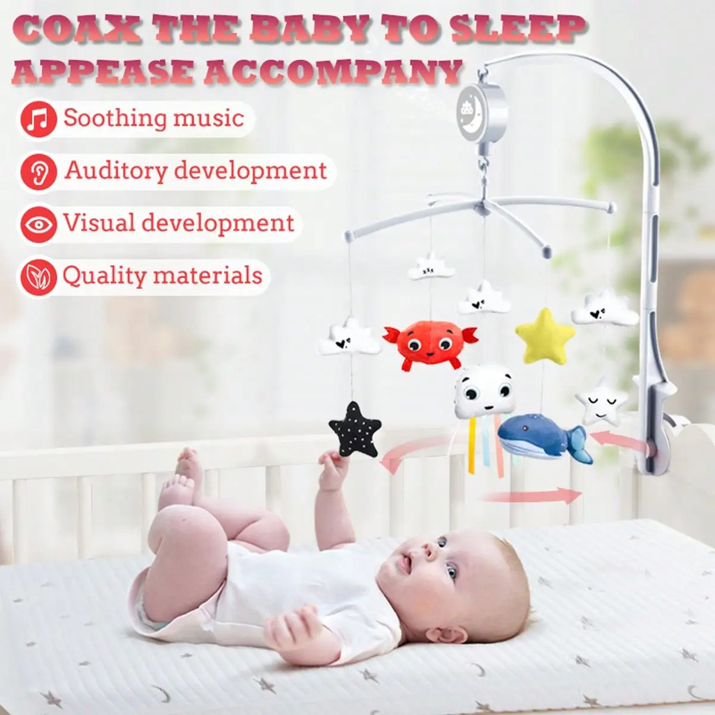 Toy Galax🎁 โมบายเด็ก ไขลาน มีเสียงดนตรี หมุนอัตโนมัติ กล่อมเด็ก กล่อมลูกน้อยเข้านอน พร้อมตุ๊กตานุ่มนิ่ม จัดส่งจากกรุงเท