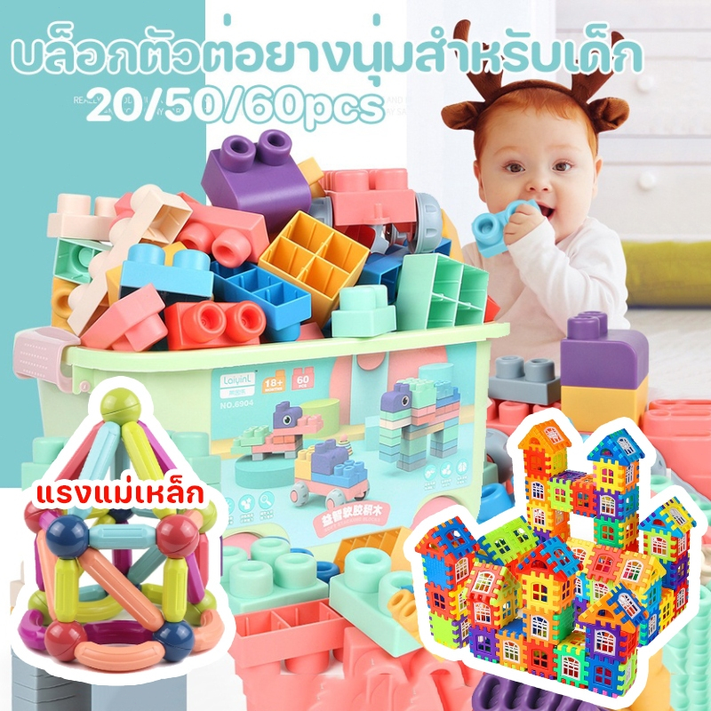 (พร้อมส่ง) บล็อคตัวต่อ 60/50/20pcs ตัวต่อ บล็อกซิลิโคน ของเล่นตัวต่อยางนุ่มสำหรับเด็ก ของขวัญ