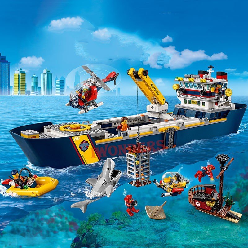 เมืองจําลองเลโก้ Marine Research Vessel Expedition เรือ Ocean Base Submarine City Building อิฐของเล่นสําหรับของขวัญเด็ก 60266 60096