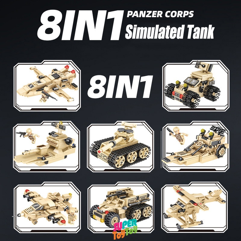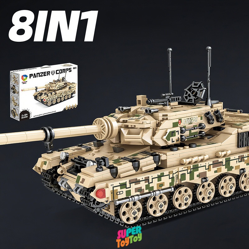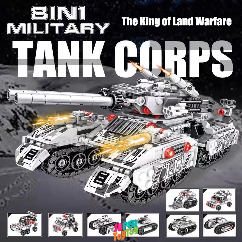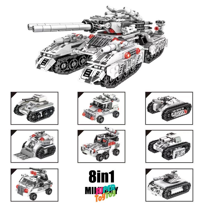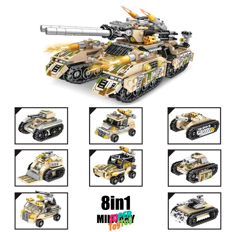 8in1 ตัวต่อรถถัง ตัวใหญ่ 1000+ชิ้น บล็อกตัวต่อ ของเล่นเด็ก ของขวัญเด็ก