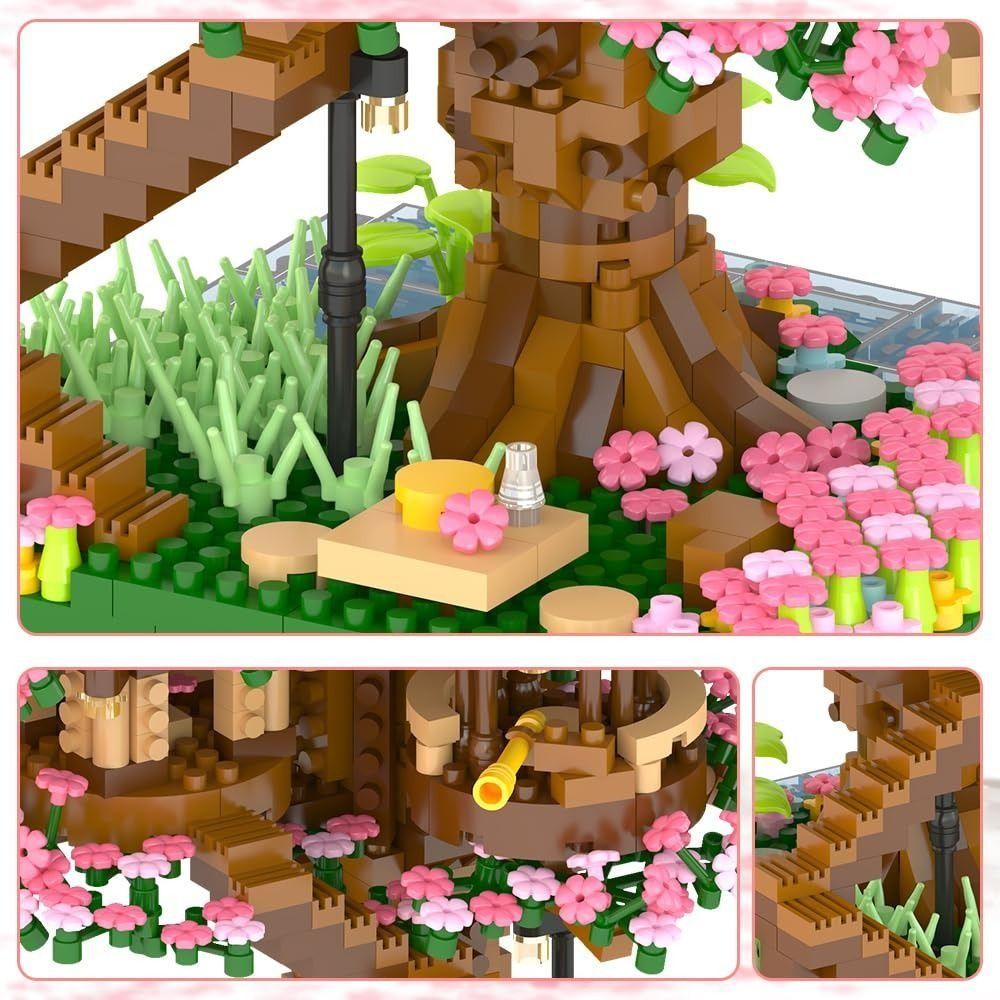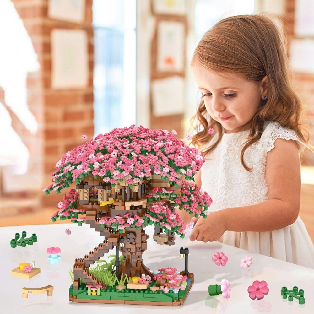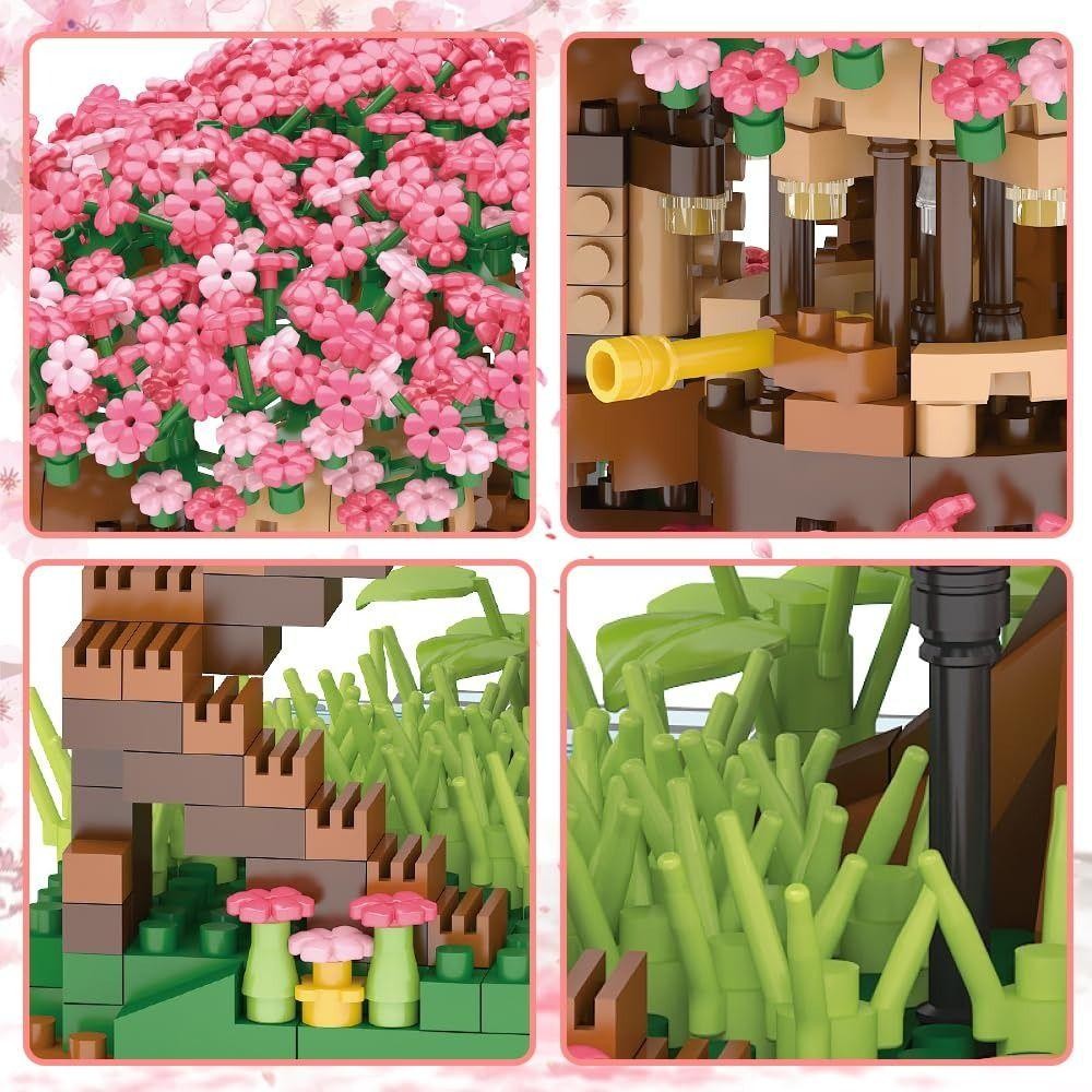 Meatherstore ชุดอาคารต้นไม้บอนไซเชอร์รี่, ของขวัญ DIY ชุดบล็อกตัวต่อต้นไม้ดอกซากุระ, ชุดโมเดลบ้านต้นไม้ซากุระอนุภาคขนาดเล็กคุณภาพสูงผู้ใหญ่