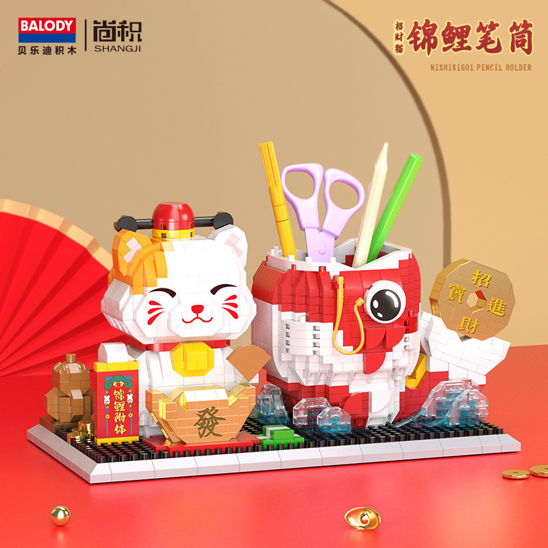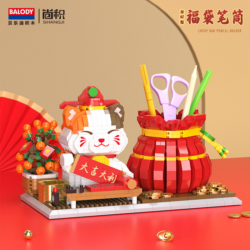 Lucky Bag ที่ใส่ปากกาแมวนําโชคบล็อกตัวต่อของเล่นของขวัญ