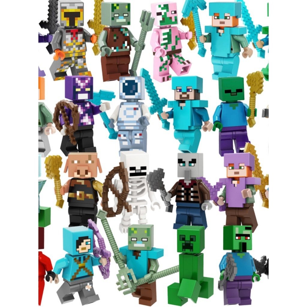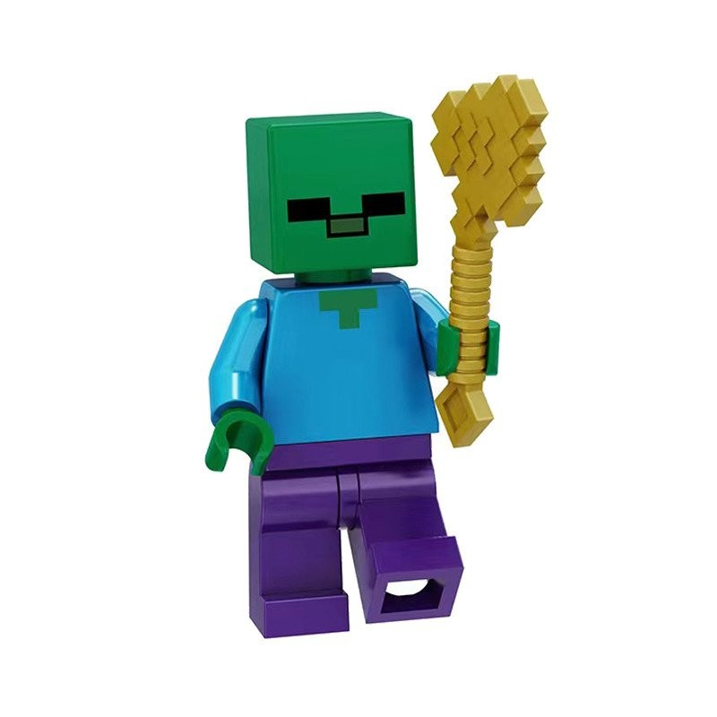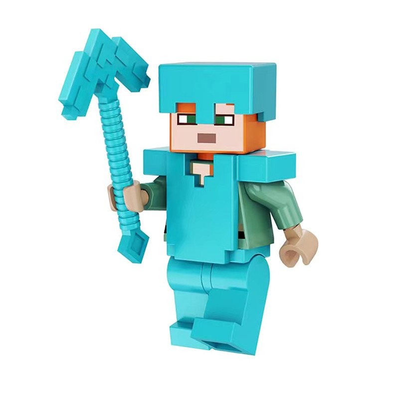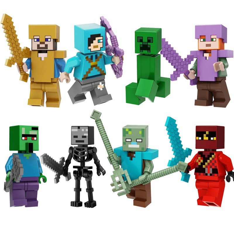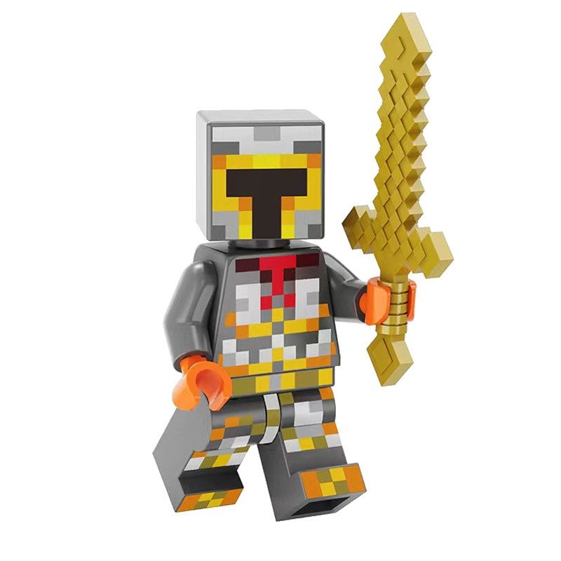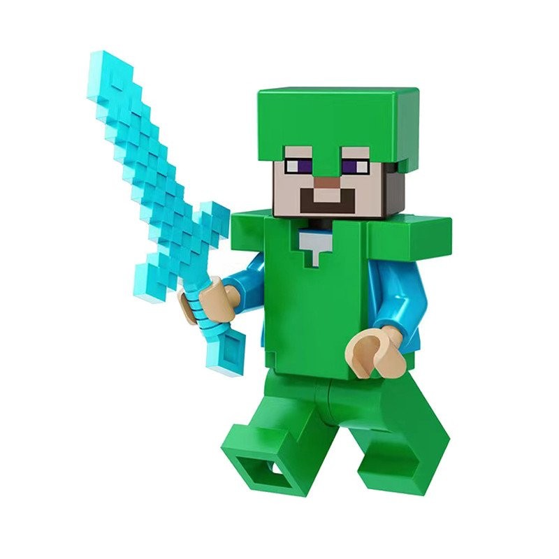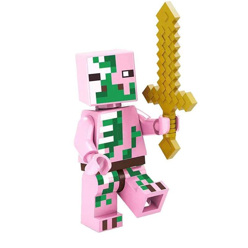 Minecraft Downing Zombie Pigman ดาบเพชรเกราะมรกตโลหะผสมพร้อมอุปกรณ์มายากลประกอบอาคารบล็อกตุ๊กตา
