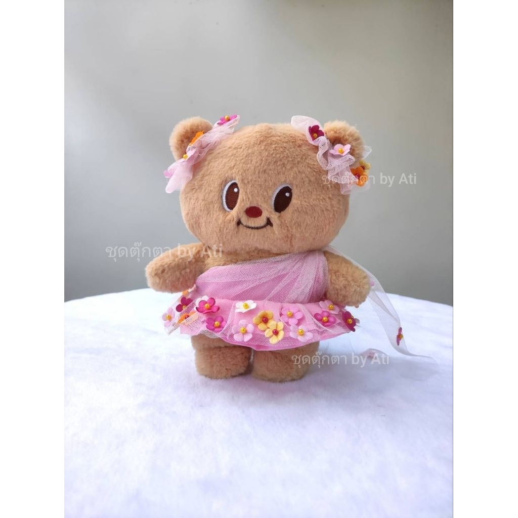 (จัดส่ง1-3วัน) ชุดbutterbear หมีเนย เซ็ทชุดเดรสสั้นดอกไม้ 2ชิ้น(ชุดเดรสสั้นดอกไม้ ดอกไม้คล้องหู1คู่)