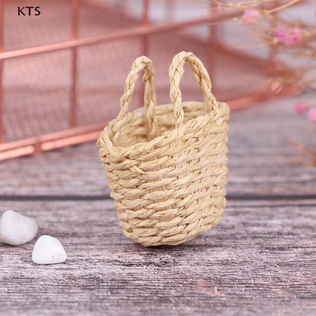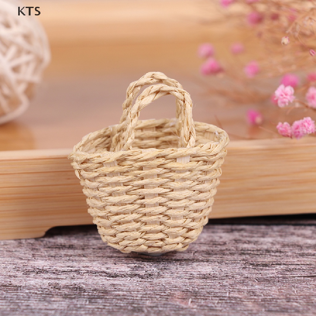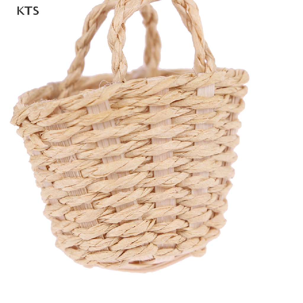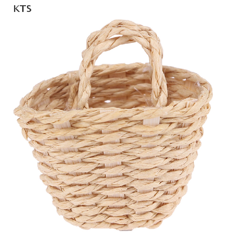 Kts ตะกร้าหวายสานมือ ขนาดเล็ก สําหรับตกแต่งบ้านตุ๊กตา 1:12