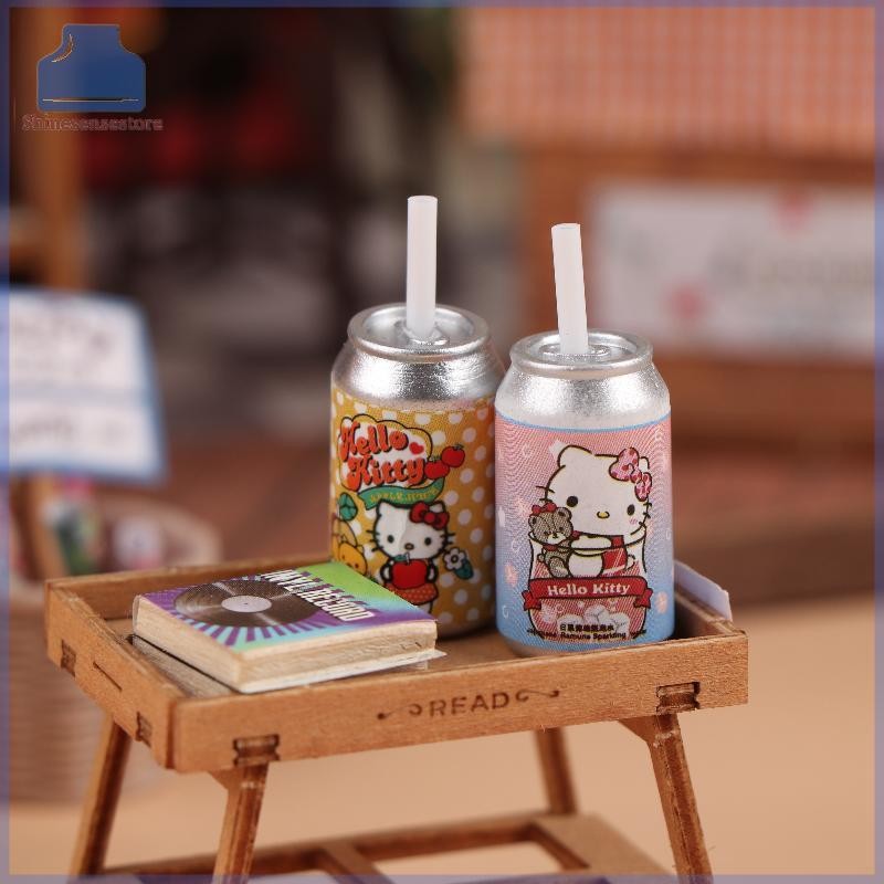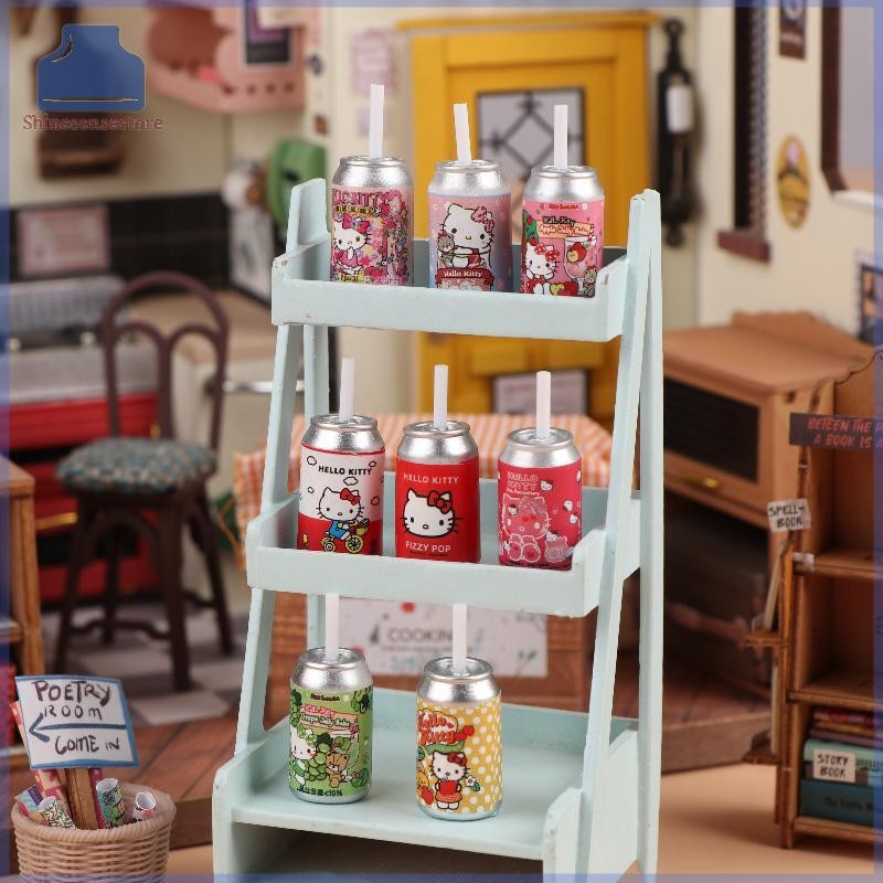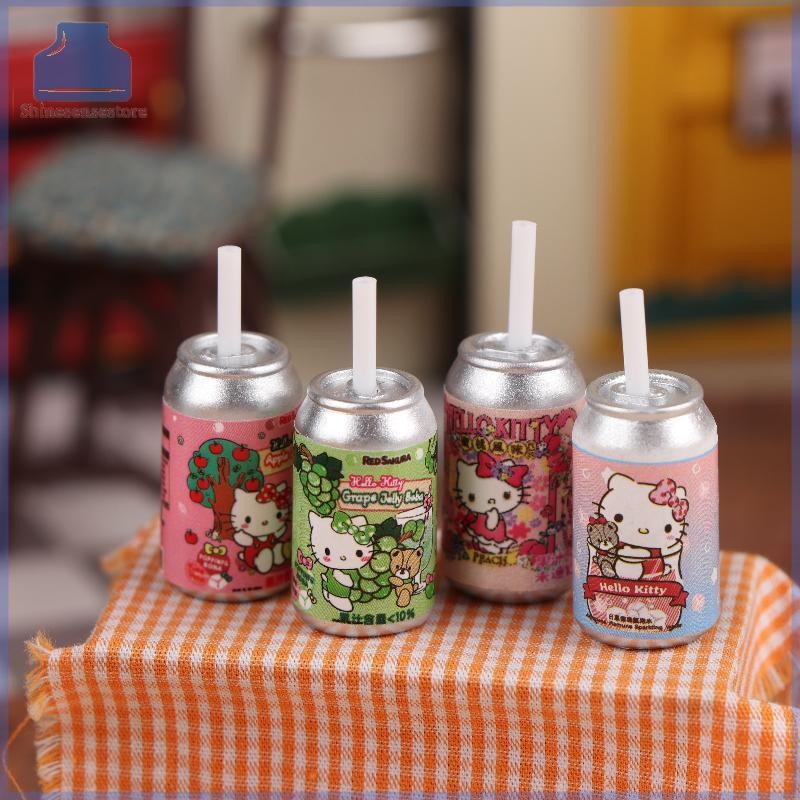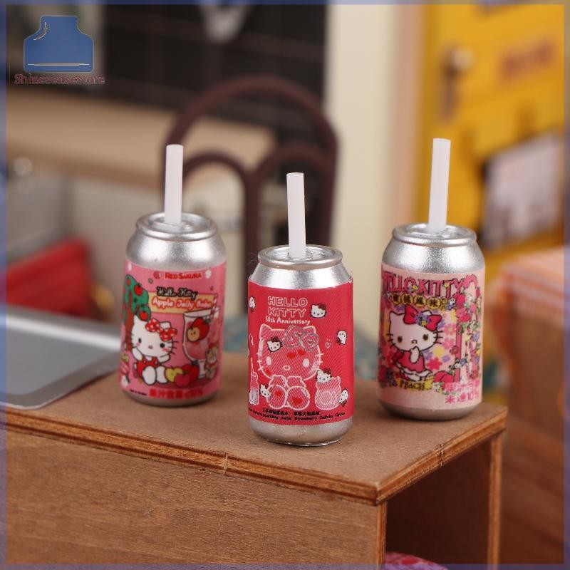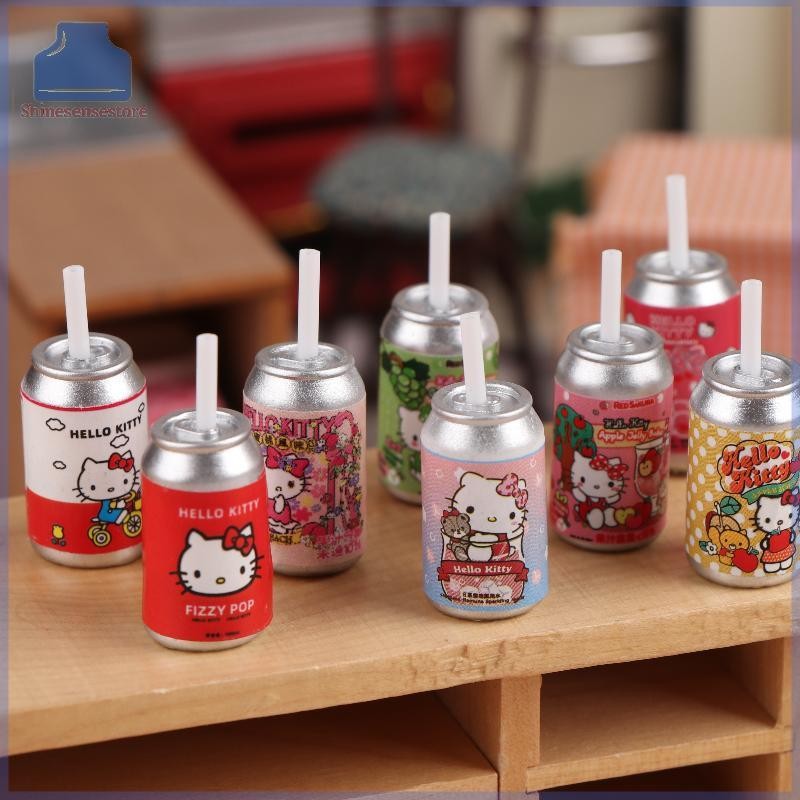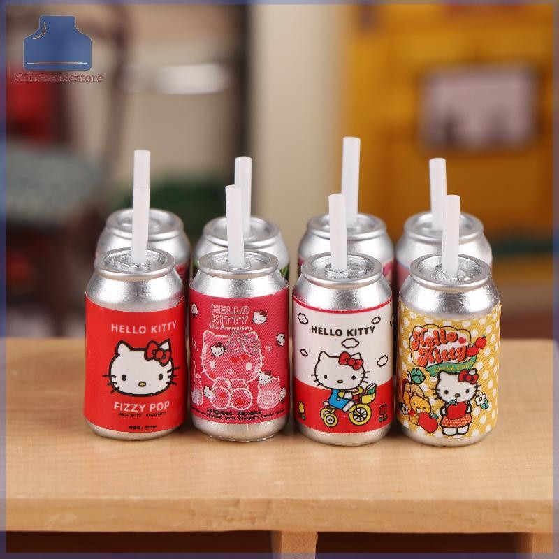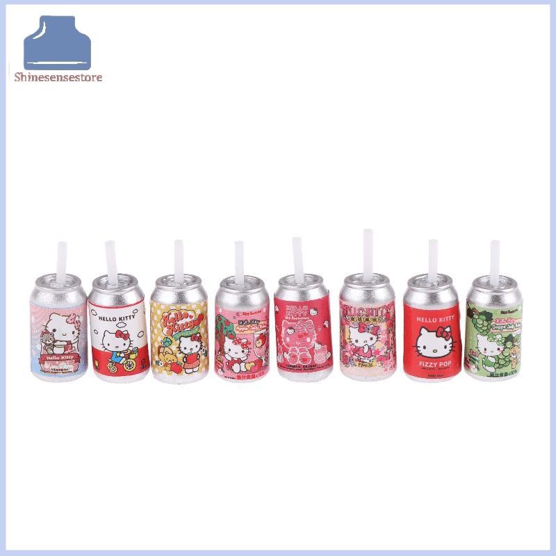 SHINE 8 ชิ้น 1:12 Dollhouse Miniature Hello Kitty ร้านสะดวกซื้อฟางขวดเครื่องดื่มตกแต่งบ้านของเล่นตุ๊กตาเครื่องใช้ในบ้าน TH