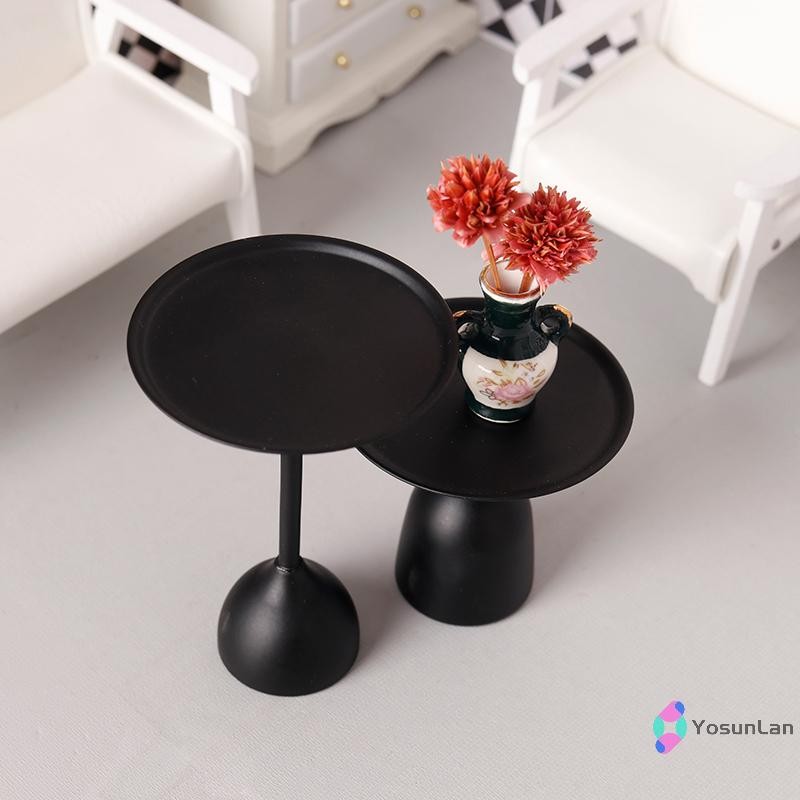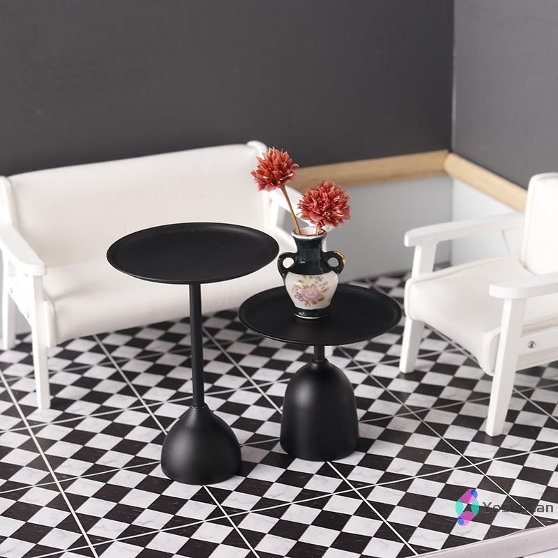 YosunLan] 1:12 Dollhouse Miniature โต๊ะเหล็กรอบโต๊ะน้ําชาจําลองโต๊ะกาแฟห้องครัวห้องนั่งเล่นเฟอร์นิเจอร์ตกแต่งของเล่นใหม่
