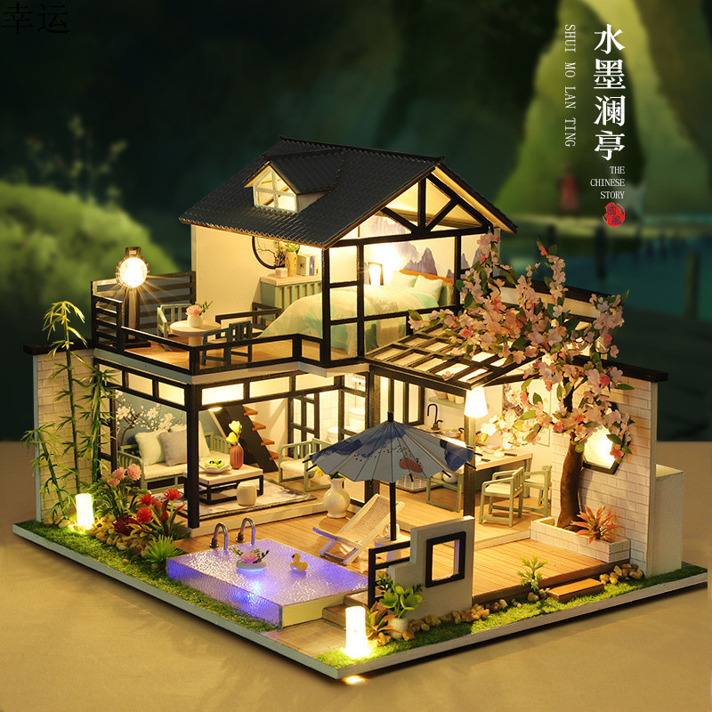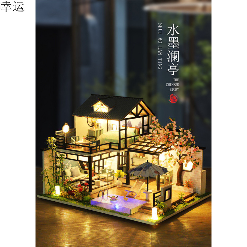 กระท่อม DIY- [ลานหมึก] -ประกอบทํามือ-โมเดล-เครื่องประดับ-ของขวัญวันเกิด-3D สามมิติ-มินิมินิ DIY-อาคาร-วิลล่า-บ้าน-ขนาดเล็ก