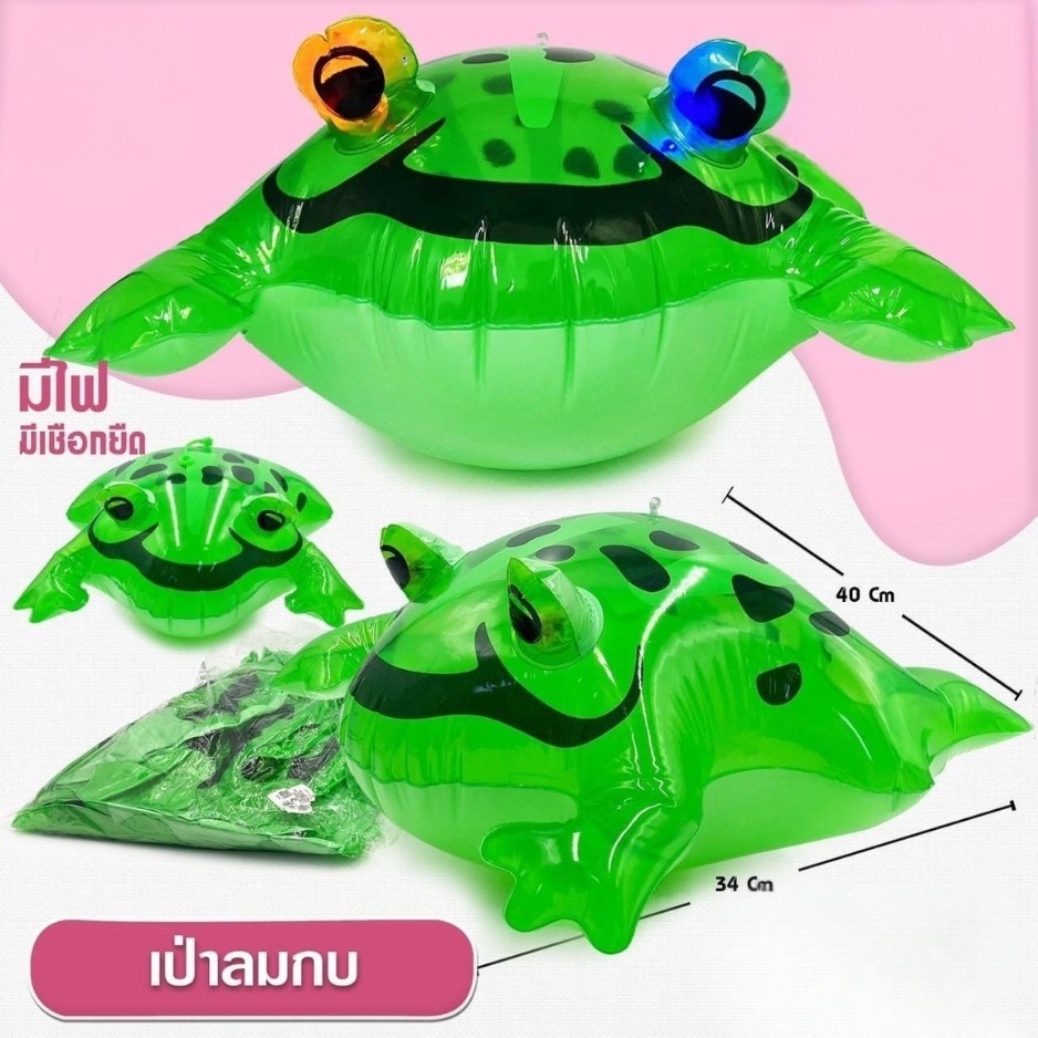 กบเป่าลมสุดน่ารัก มีไฟที่ตา วิบวับตอนกลางคืน พร้อมเชือกยึด พกง่าย เล่นได้ทั้งสระน้ำและสนาม เหมาะสำหรับเด็กและงานปาร์ตี้