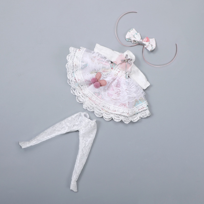 ชุดเดรสกระโปรง พร้อมที่คาดผม สําหรับตุ๊กตา 1/6 BJD 30 ซม.