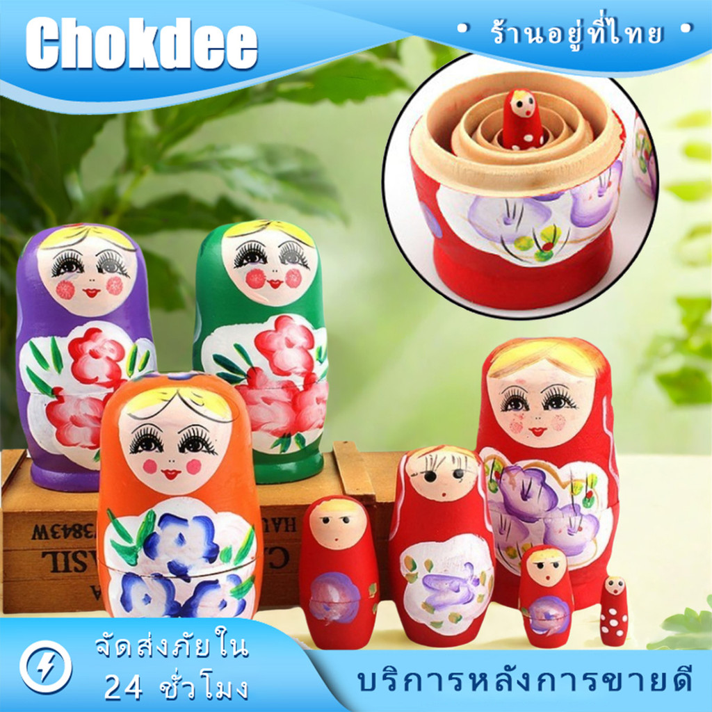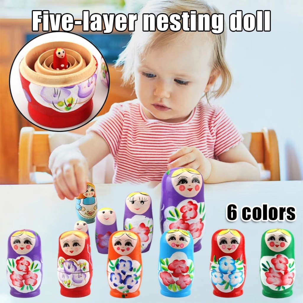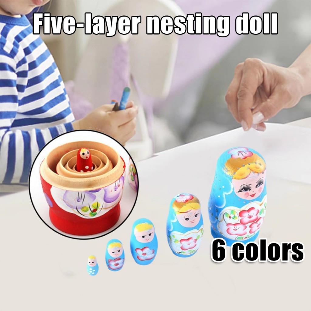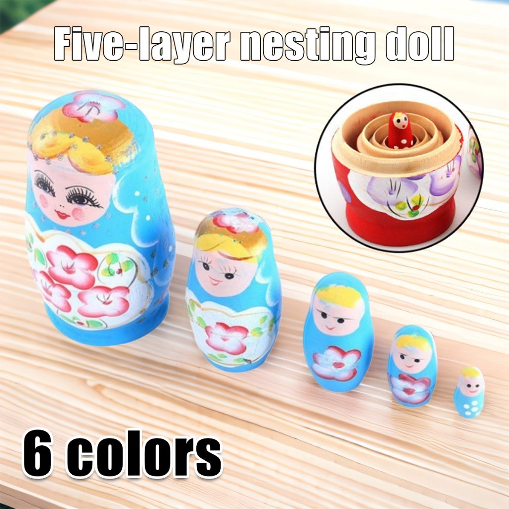 ชุด5ชิ้น ตุ๊กตาแม่ลูกดก รัสเซีย แบบไม้ รูปการ์ตูน ของเล่นขวญน่ารัก ลายสวย