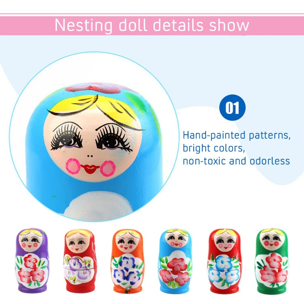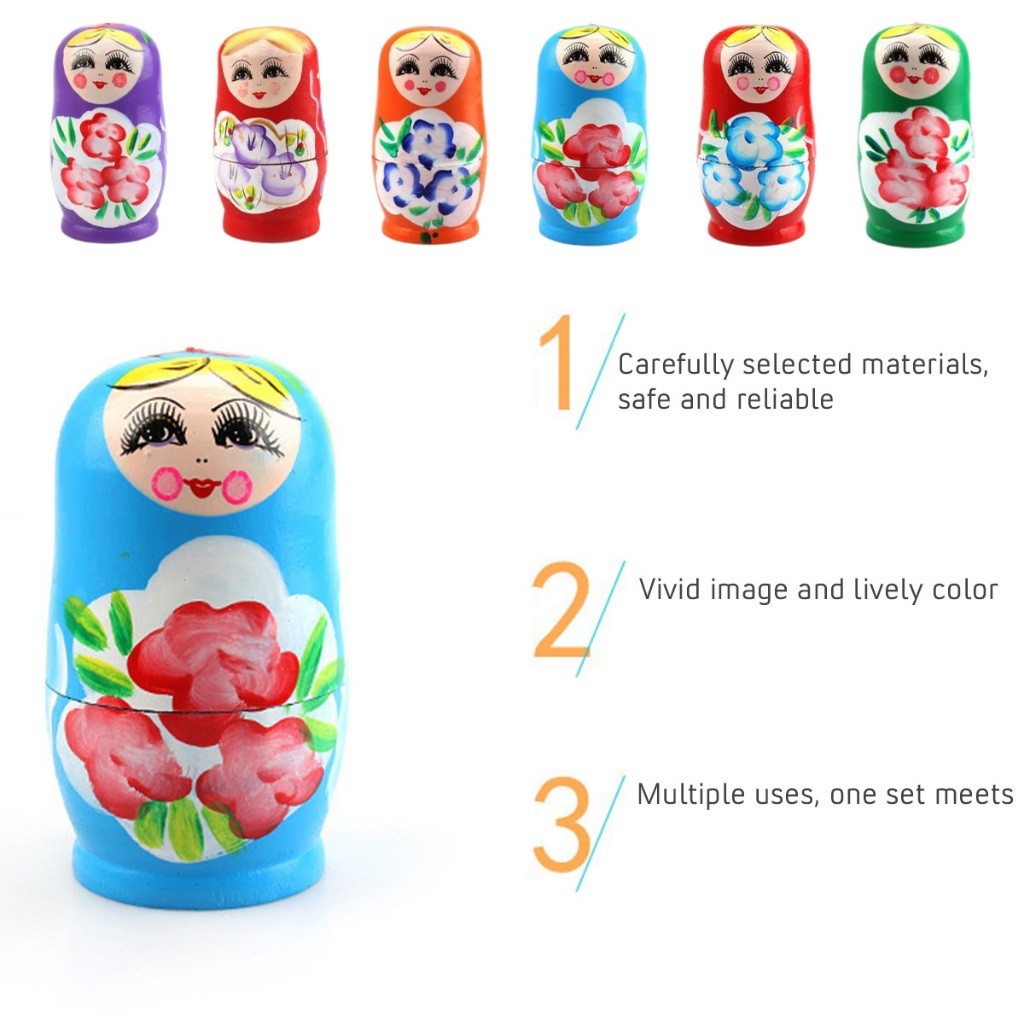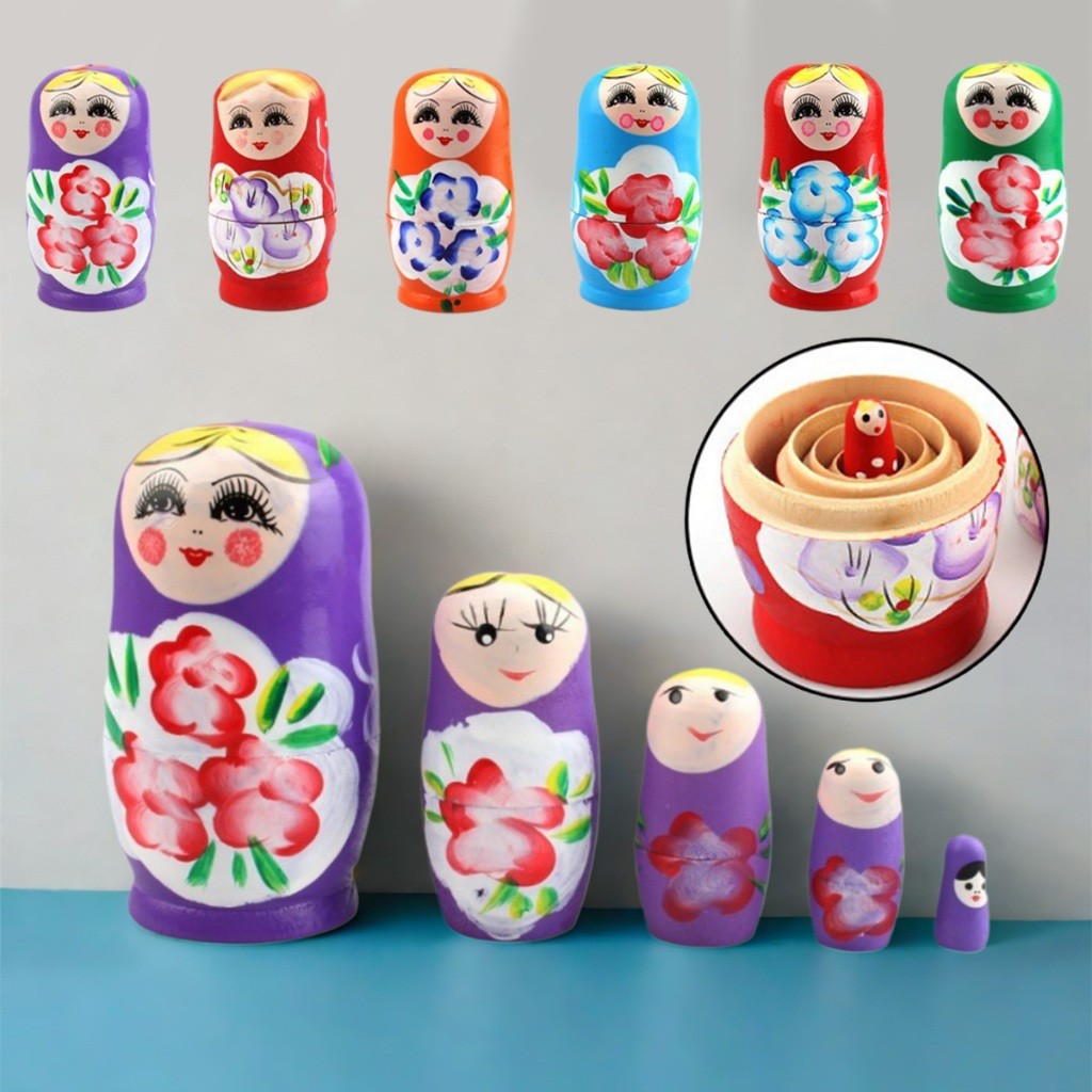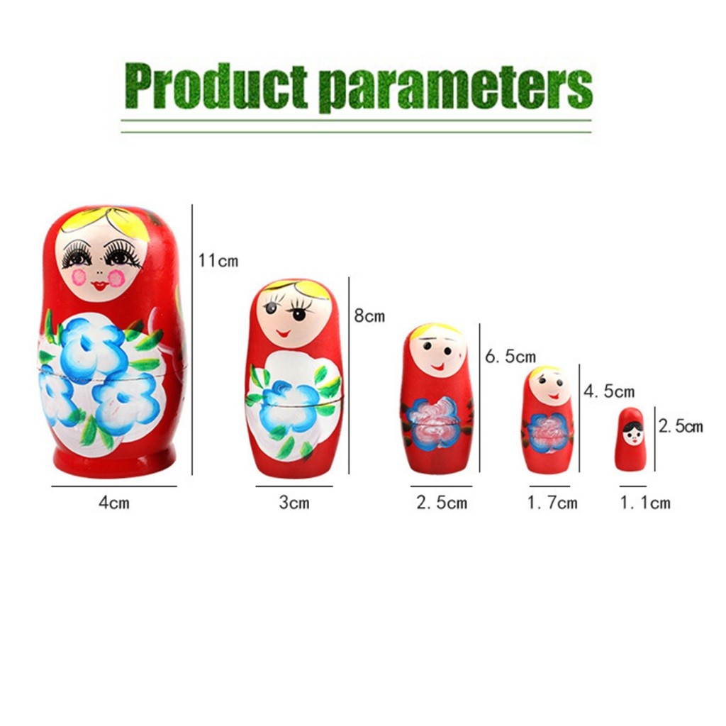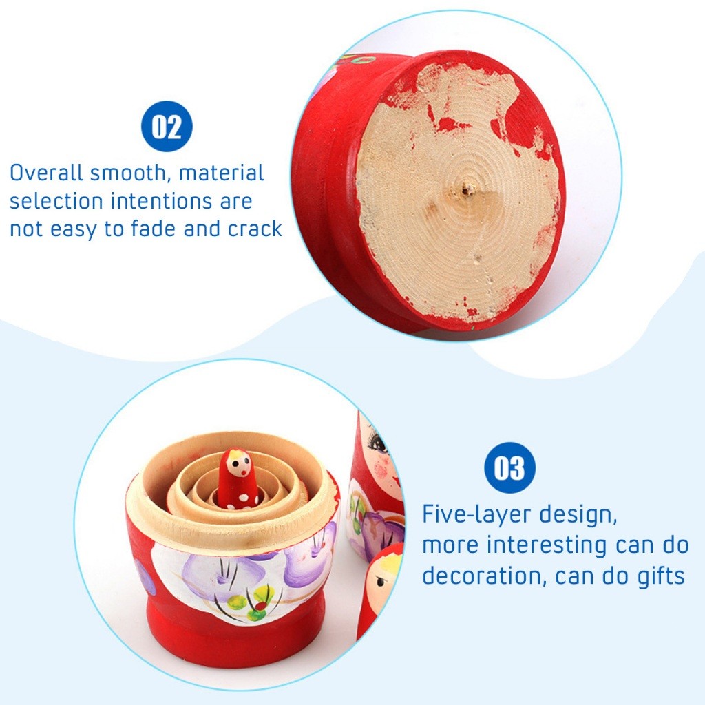 ชุด5ชิ้น ตุ๊กตาแม่ลูกดก รัสเซีย แบบไม้ รูปการ์ตูน ของเล่นขวญน่ารัก ลายสวย