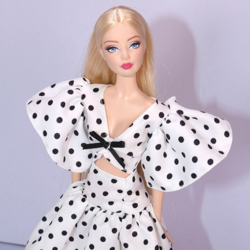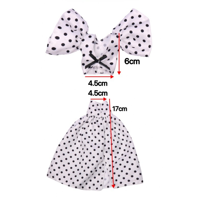 ชุดตุ๊กตาของเล่น 30 ซม. แขนกว้างลายจุดและกระโปรงแยก ชุด 2 ชิ้น