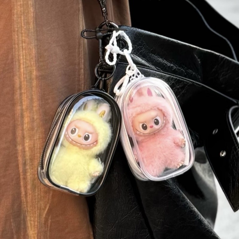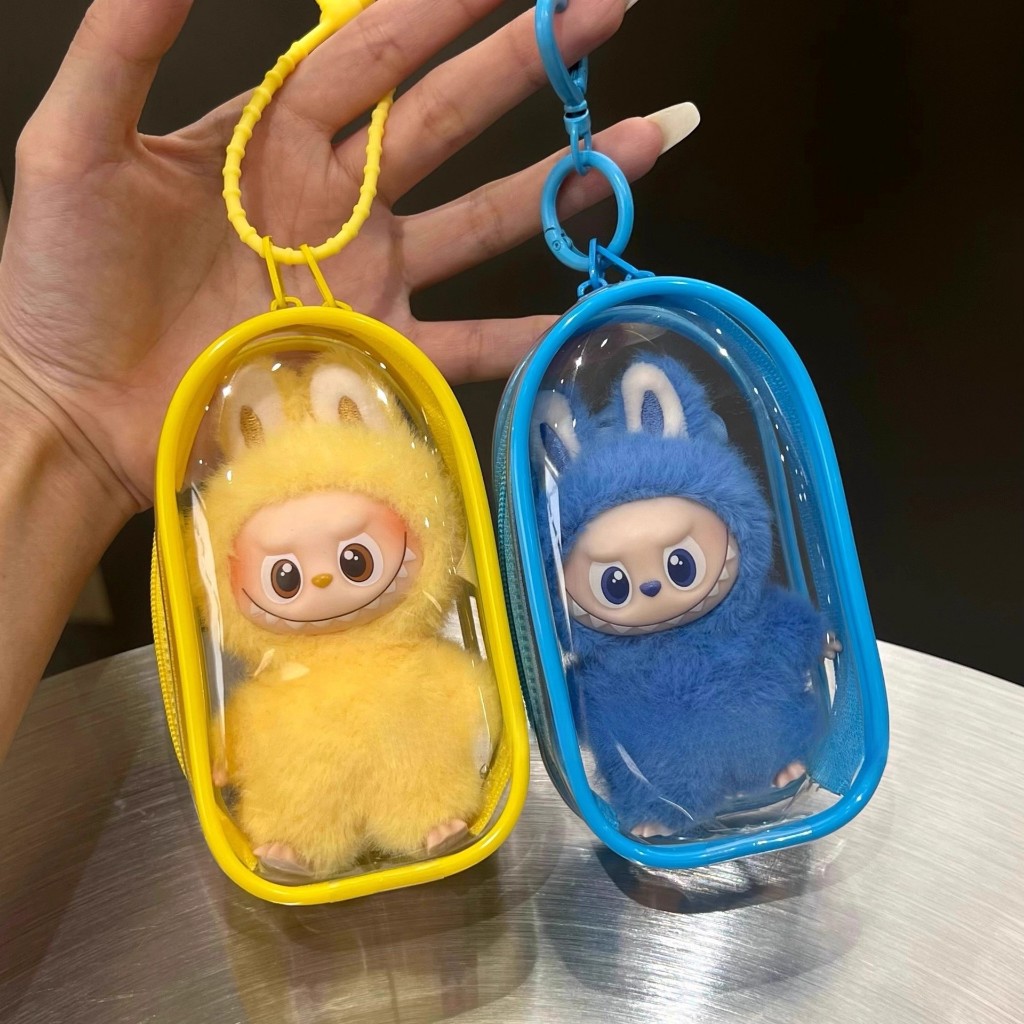 2PCS Labubu V4 ตุ๊กตากระเป๋าเก็บ Labubu MONSTERS รหัสผ่านด้านใน 4.0 Series เคสป้องกัน PVC โปร่งใสกันฝุ่น Outing เดินกระเป๋าเด็ก
