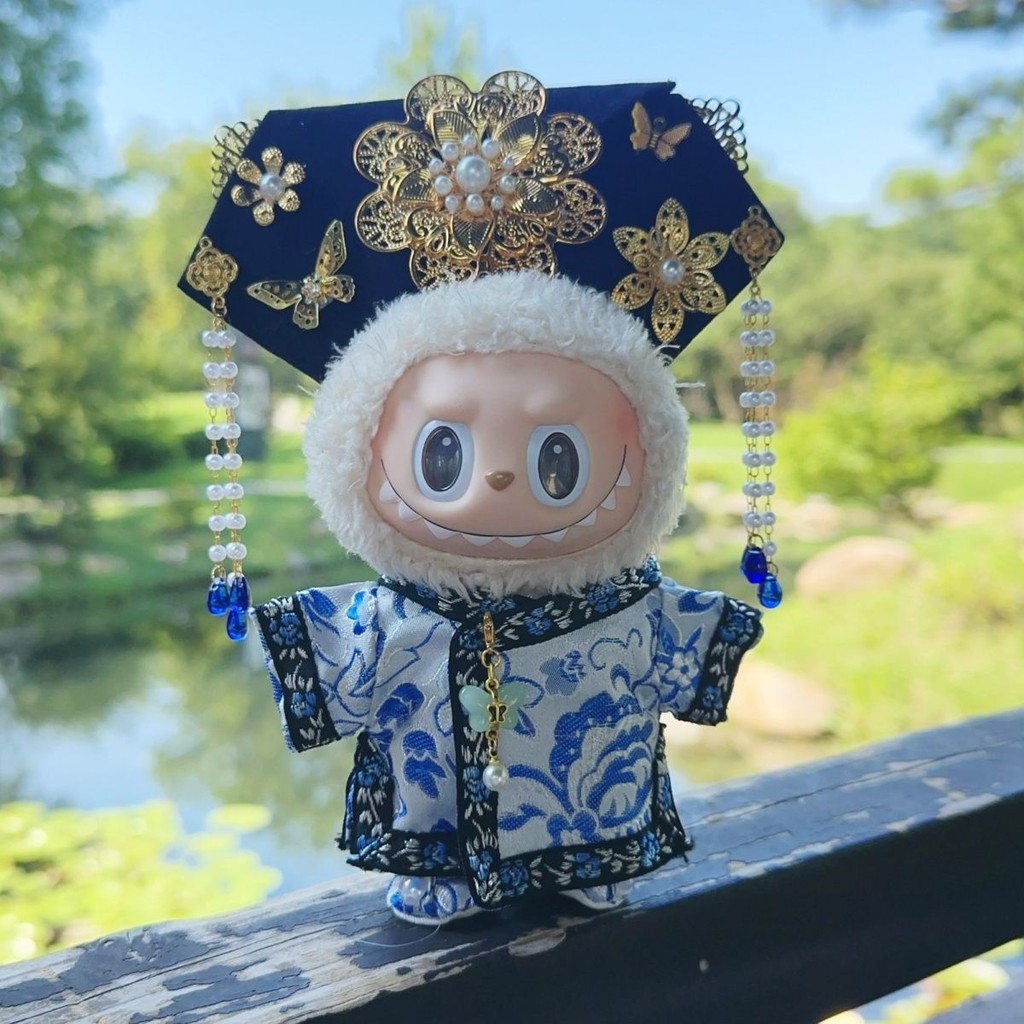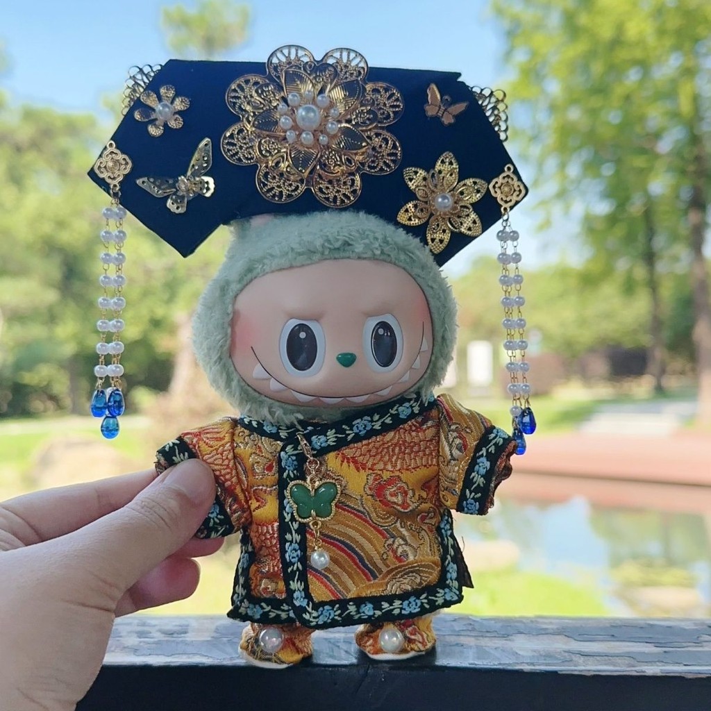 17 ซม. Labubu เสื้อผ้า v1v2v3 ใหม่สไตล์จีนโบราณ Cheongsam Checkered สูท