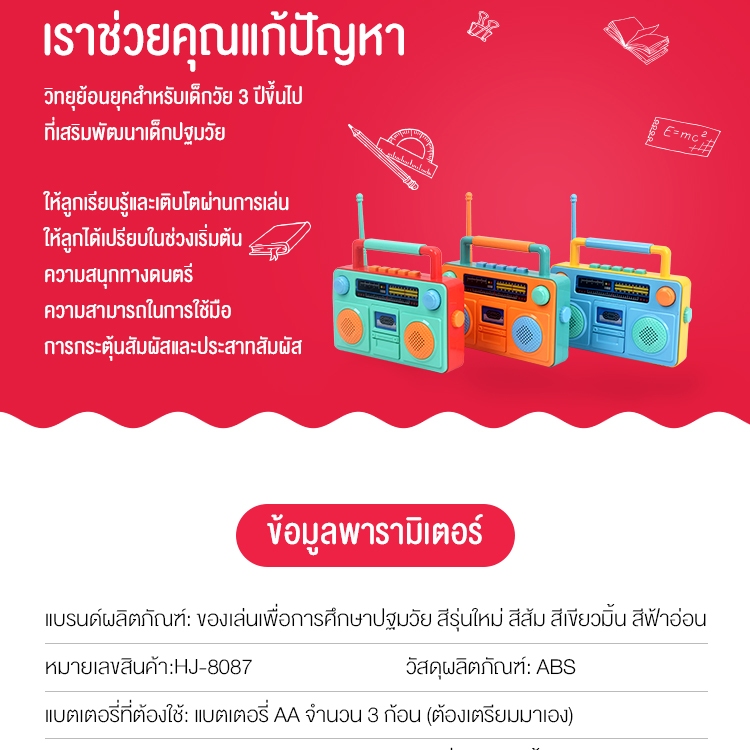 [ส่งจากไทย] วิทยุของเล่น 8087A สําหรับเด็กเล็ก 🎵✨ – เสริมพัฒนาการ เสียงเพลง+แสงสี ฝึกสมอง พกพาสะดวก