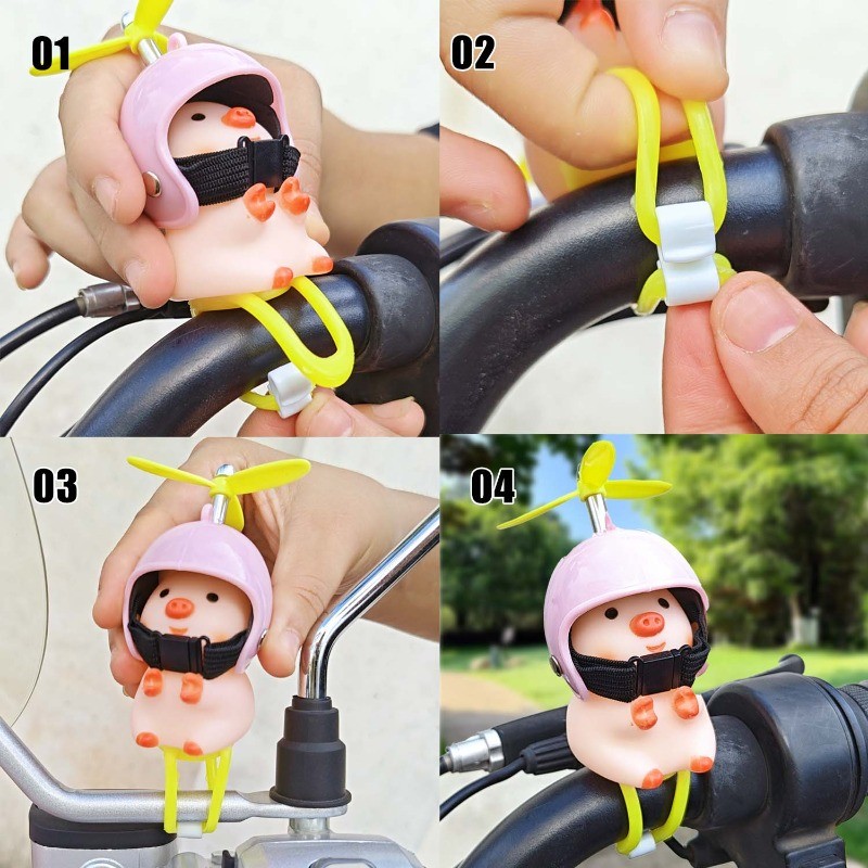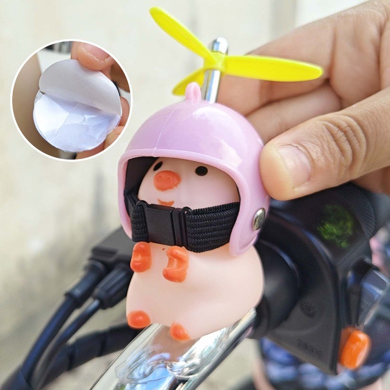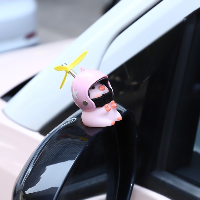 [เช้า3ค]ตกแต่งรถหมูน่ารักพร้อมหมวกกันน็อคขนาดเล็กเครื่องประดับยานพาหนะที่ทนทานสําหรับรถจักรยานยนต์/จักรยาน/รถยนต์ไม่มีเครื่องมือต้องการกาวและสายรัดยึดตัวเลือกติดตั้ง2