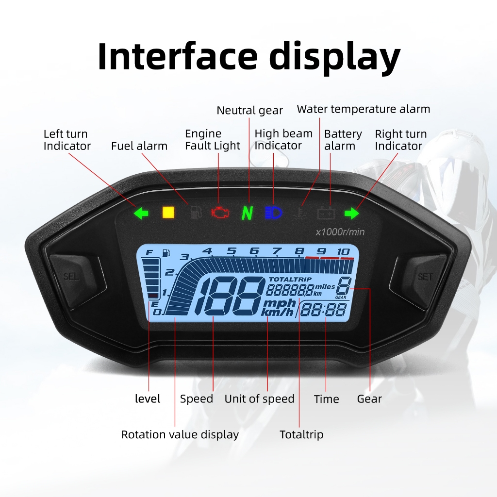 รถจักรยานยนต์ดิจิตอลที่มีสีสัน LCD Speedometer เครื่องวัดระยะทางสําหรับ Honda Grom 125 MSX125 Tachometer