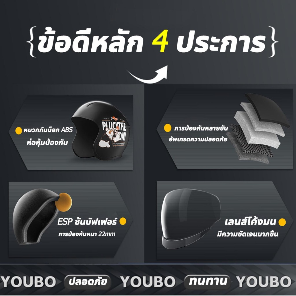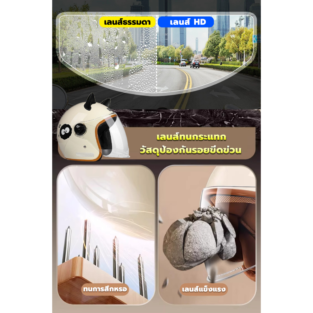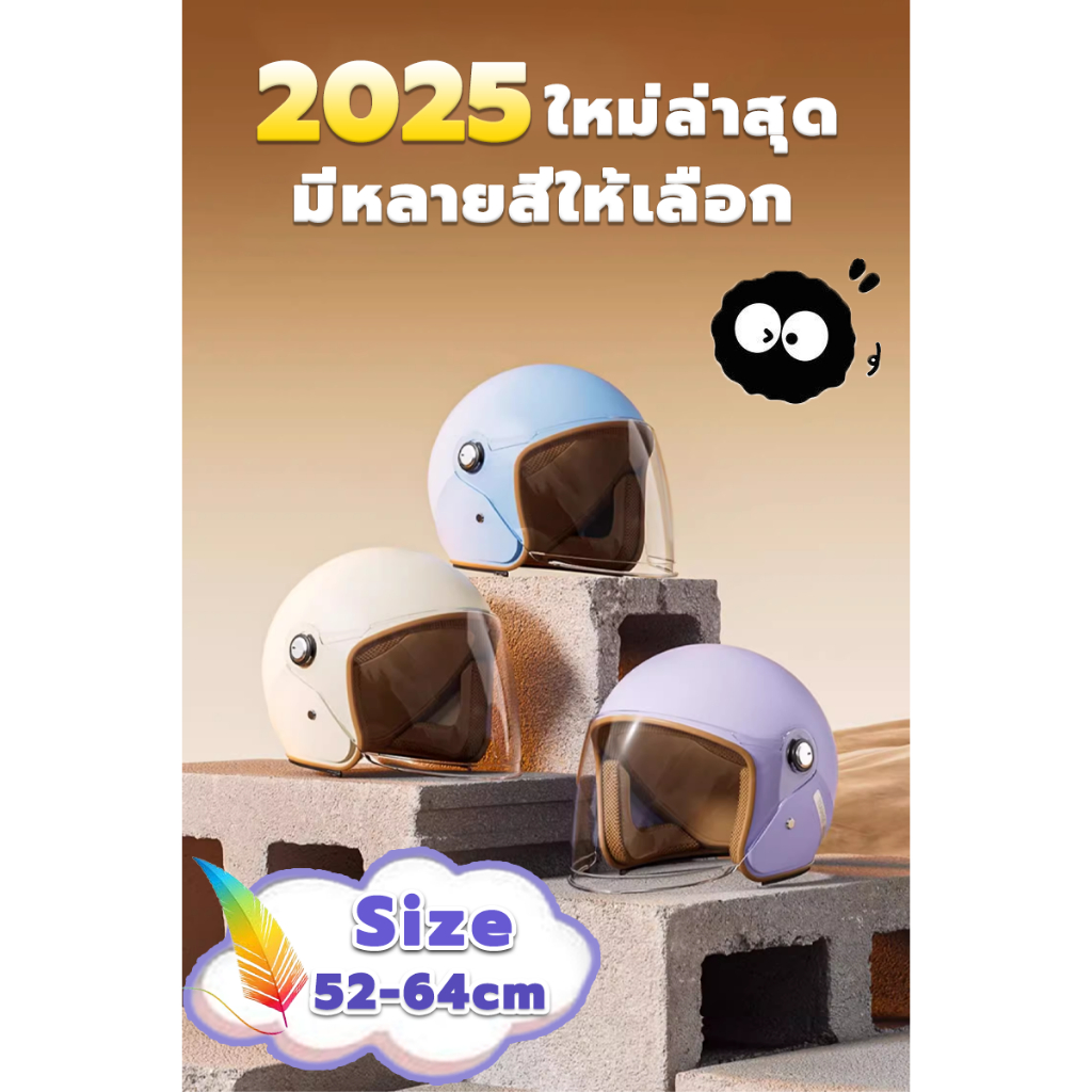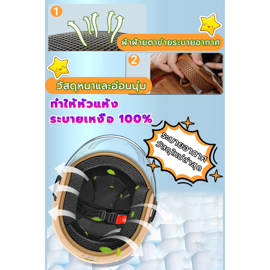 【2025 รุ่นอัพเกรด】SMILE หมวกกันน็อค หมวกกันน็อคผญ บังแดด HD ระบายอากาศ สะดวกสบาย ถ่ายเทอากาศได้ดี