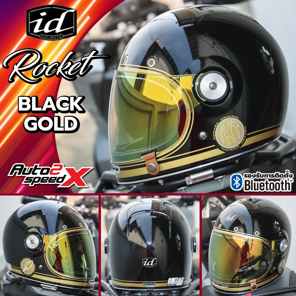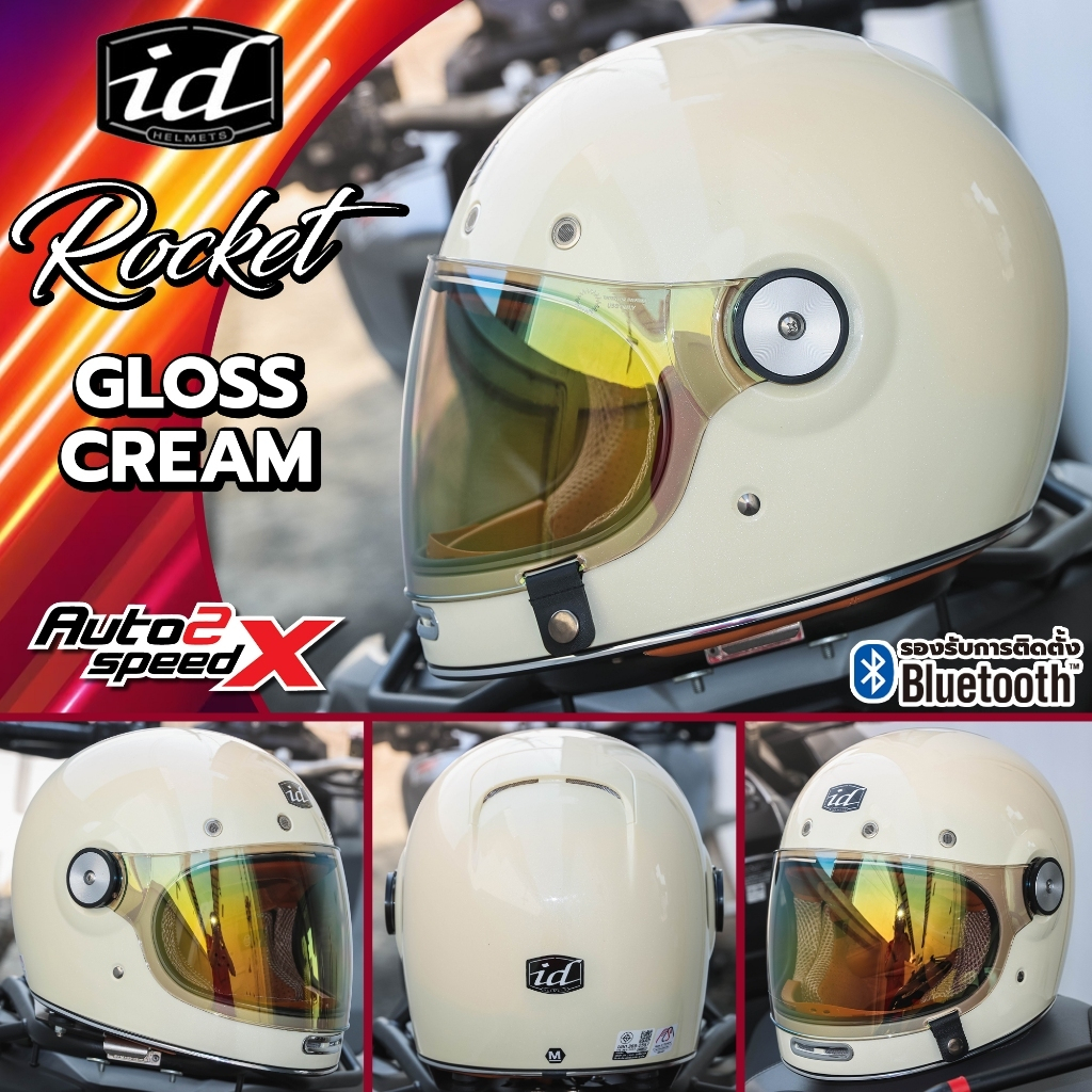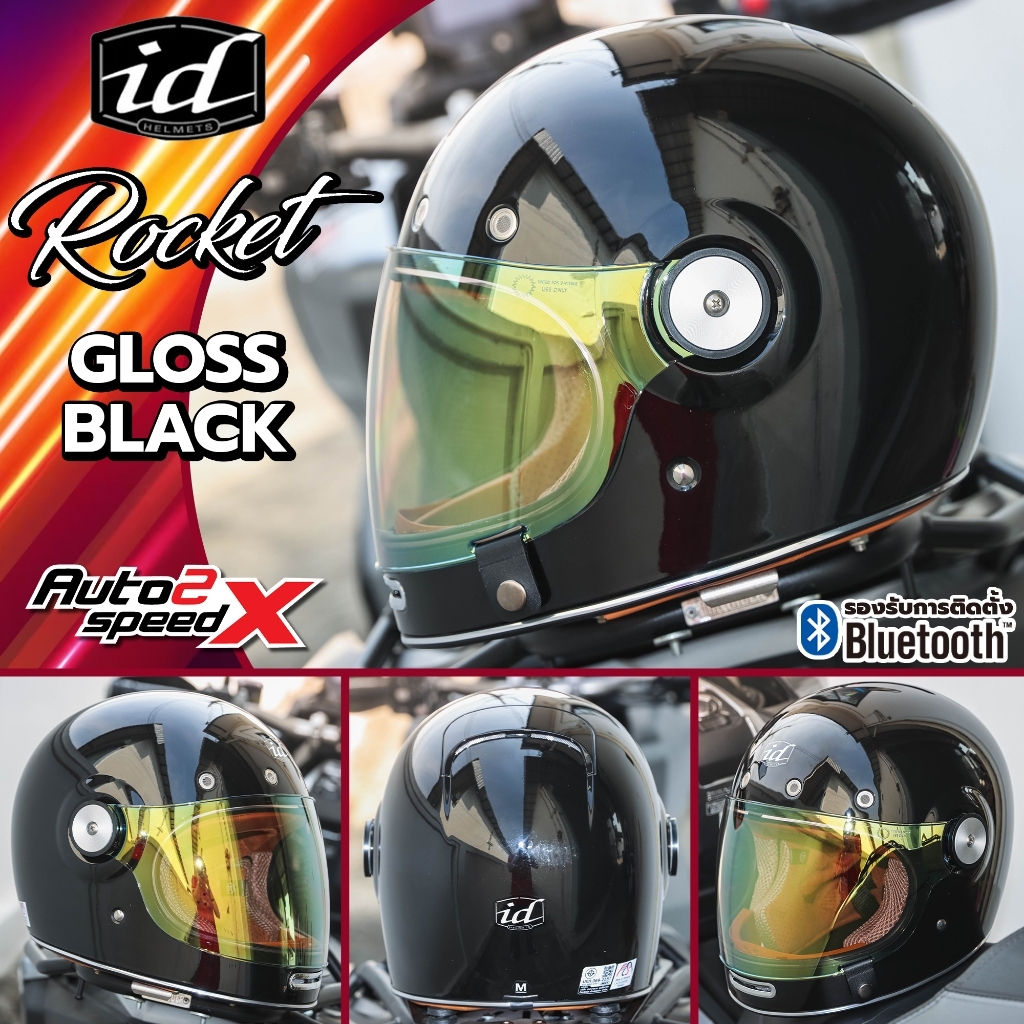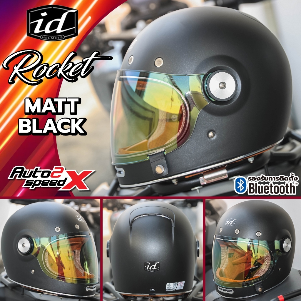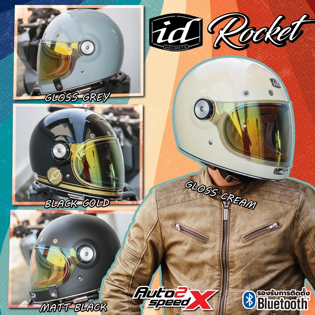 [ใช้โค้ดคุ้มลด 20%] แถมฟรีชิลด์บับเบิ้ลดำอีก1อัน หมวกกันน็อค iD ROCKET วินเทจ คลาสสิค 2025