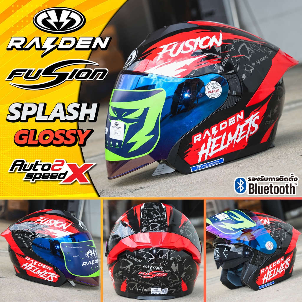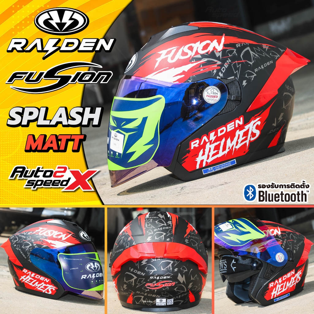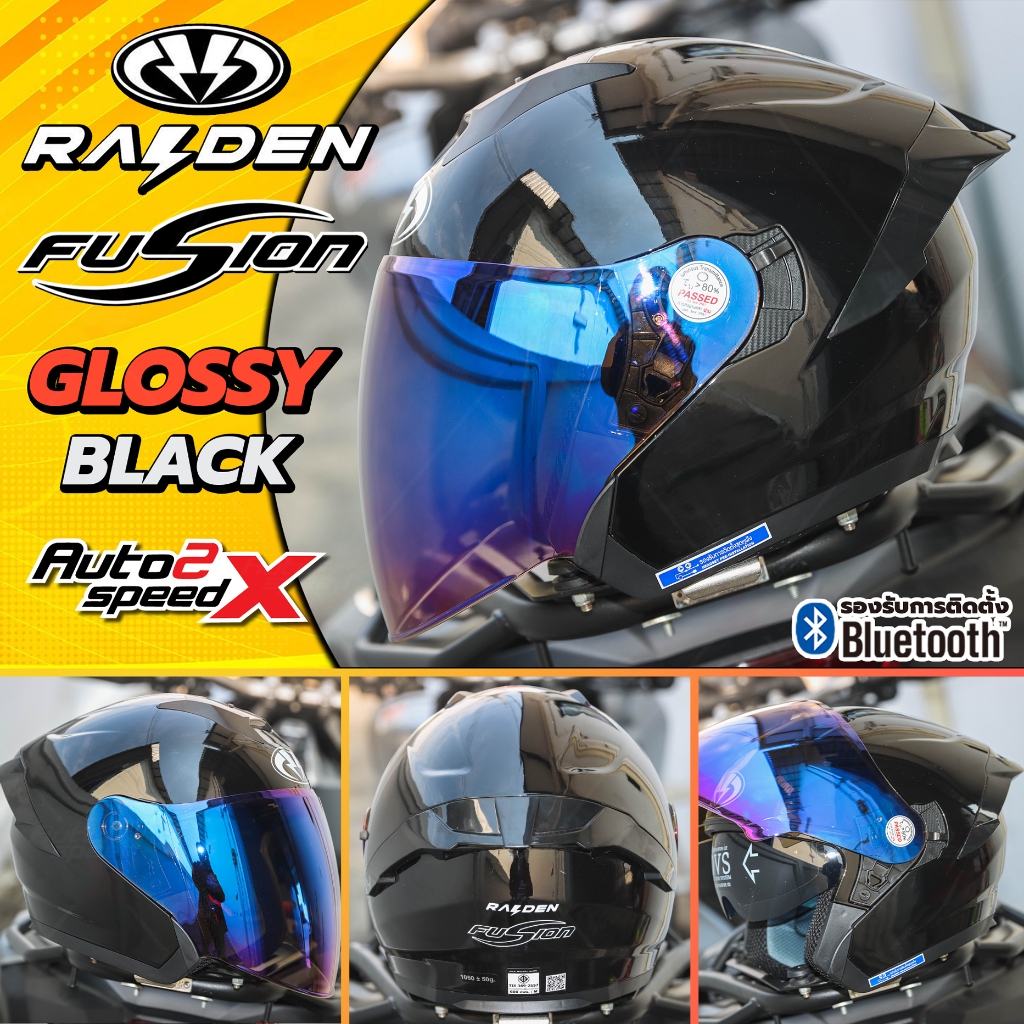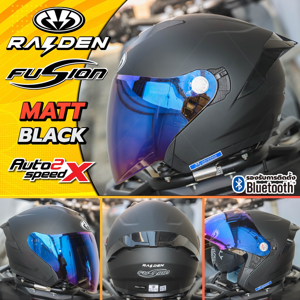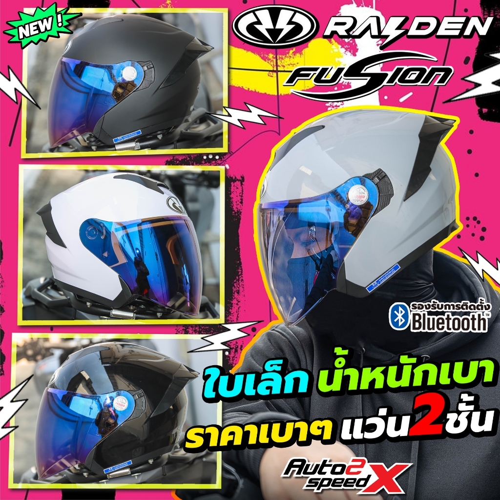 [ใช้โค้ดคุ้มลด 20%] หมวกกันน็อค RAIDEN FUSION OPEN FACE แว่น2ชั้น รองรับบลูทูธ น้ำหนักเบา