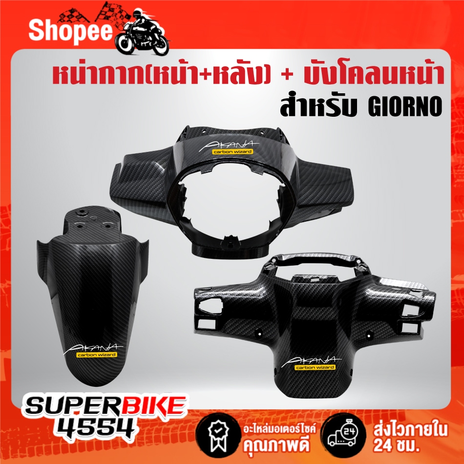 (3ชิ้น เคฟล่าลายสาน)หน้ากากหน้า+หน้ากากหลัง+บังโคลนหน้า สำหรับ GIORNO จิโอโน่ +สติกเกอร์ AK 3ใบ