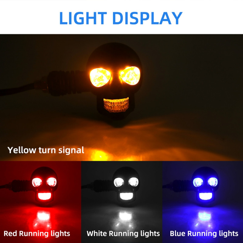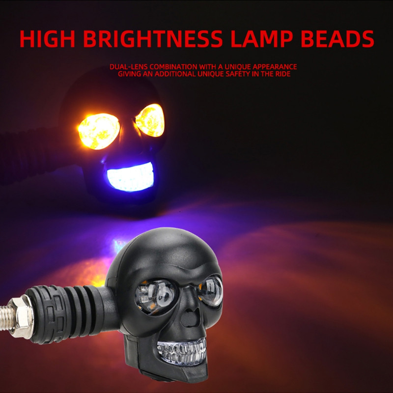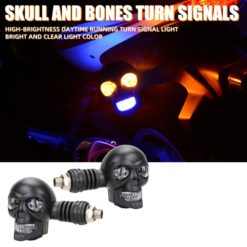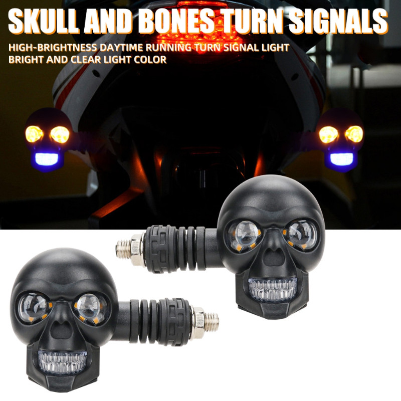 ไฟเลี้ยวรถจักรยานยนต์รูปหัวกะโหลก 2 ชิ้น – ไฟรถจักรยานยนต์ LED 12 โวลต์