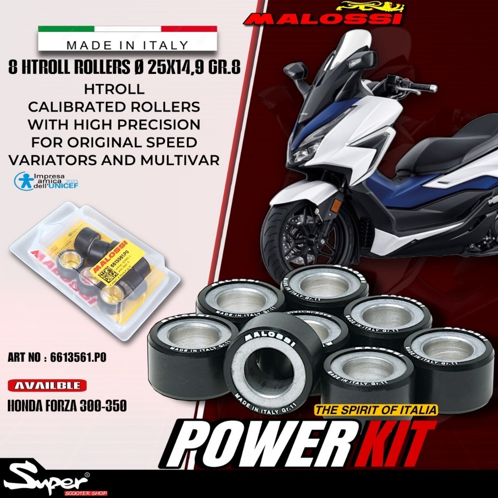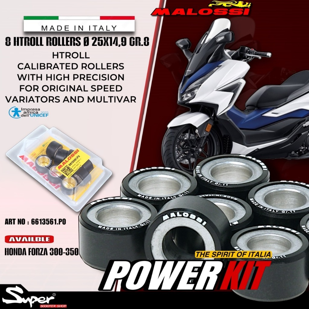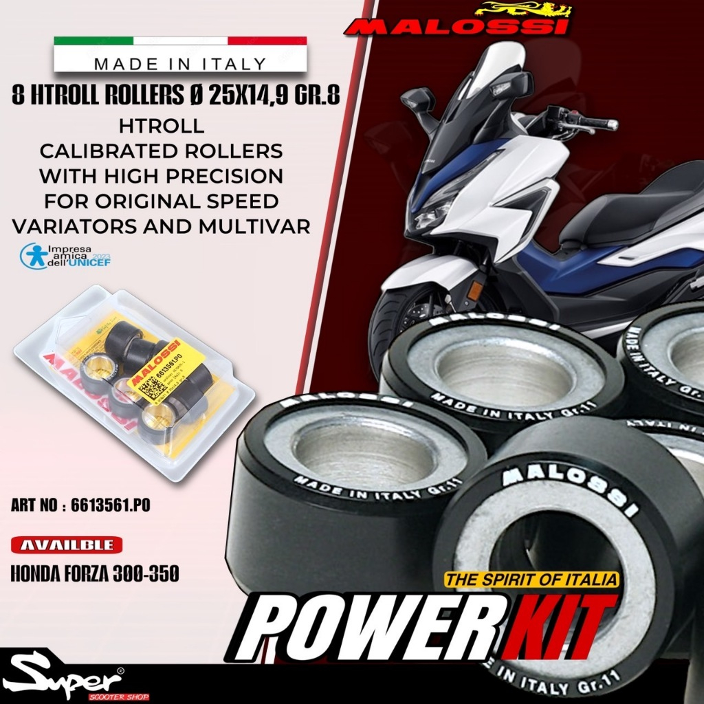 เม็ดตุ้มแรงเหวี่ยง MALOSSI สำหรับ FORZA 300 FORZA 350 น้ำหนัก 25×14.9 GR.8 กรัม CODE : 6613561.P0