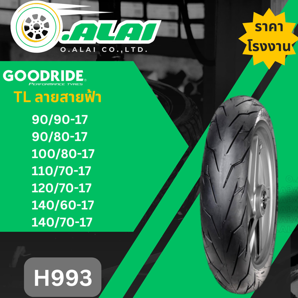 [ยางใหม่]ยางเรเดียลมอเตอร์ไซค์ GOODRIDE กู้ดไรด์H993 ลายสายฟ้า TL (Tubeless) ขอบ17 นิ้ว ไม่ใช้ยางใน