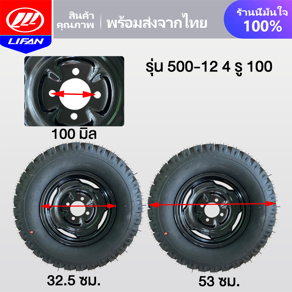 11.11】LIFAN OFFICIAL ล้อยางสามล้อ ยางนอกพร้อมกะทะล้อ4.00-12 5.00-12 4.50-12 กะทะ4รู100 สำหรับ ล้อหลัง ล้อยางสามล้อ