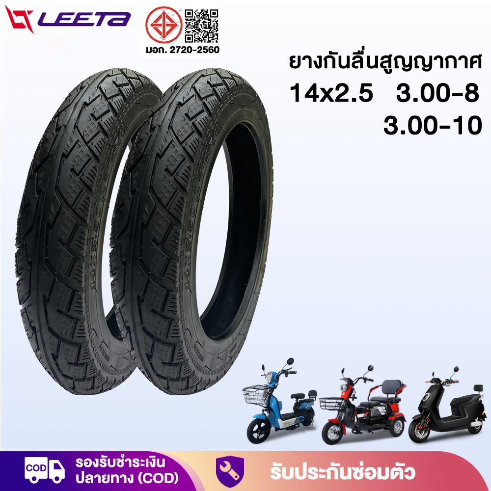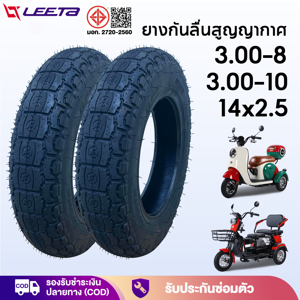 11.11】LEETA ยางกันลื่นสูญญากาศ3.00-8 ยางนอก(ไม่ใช้ยางใน) 14×2.5 ใช้สำหรับ มอเตอร์ไซค์ไฟฟ้า รถไฟฟ้าผู้ใหญ่3ล้อ