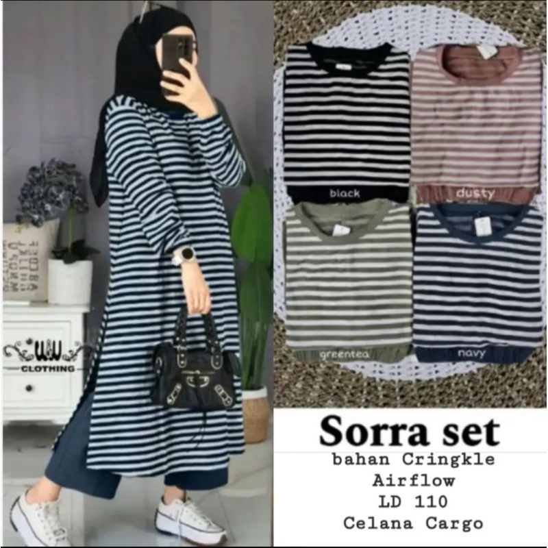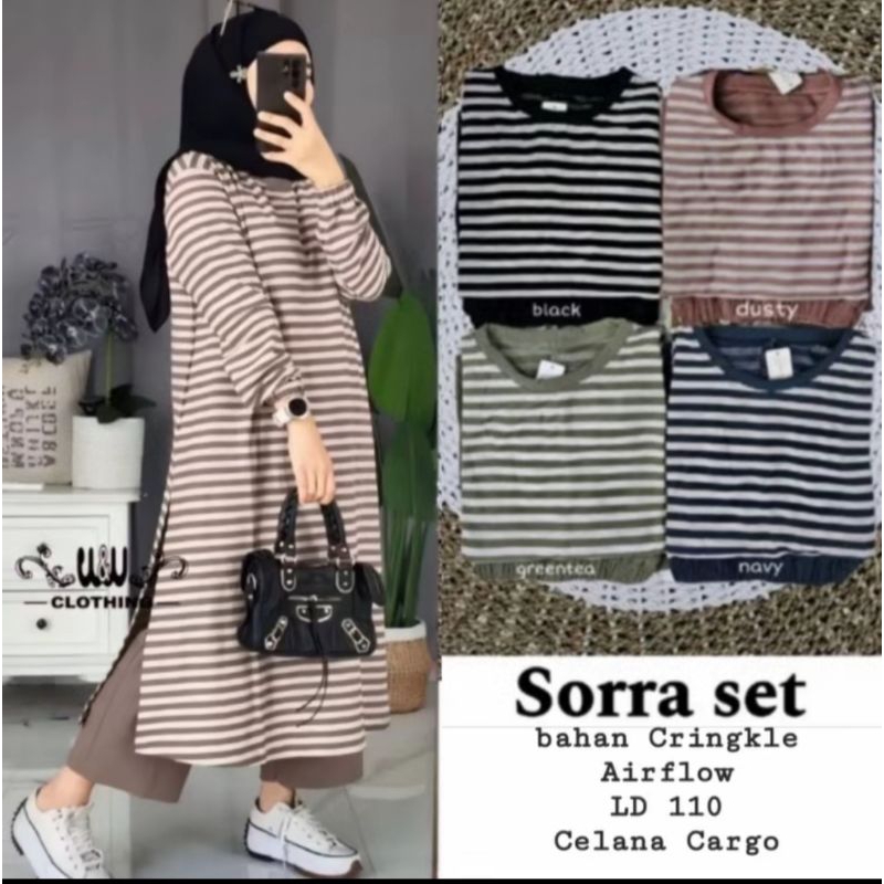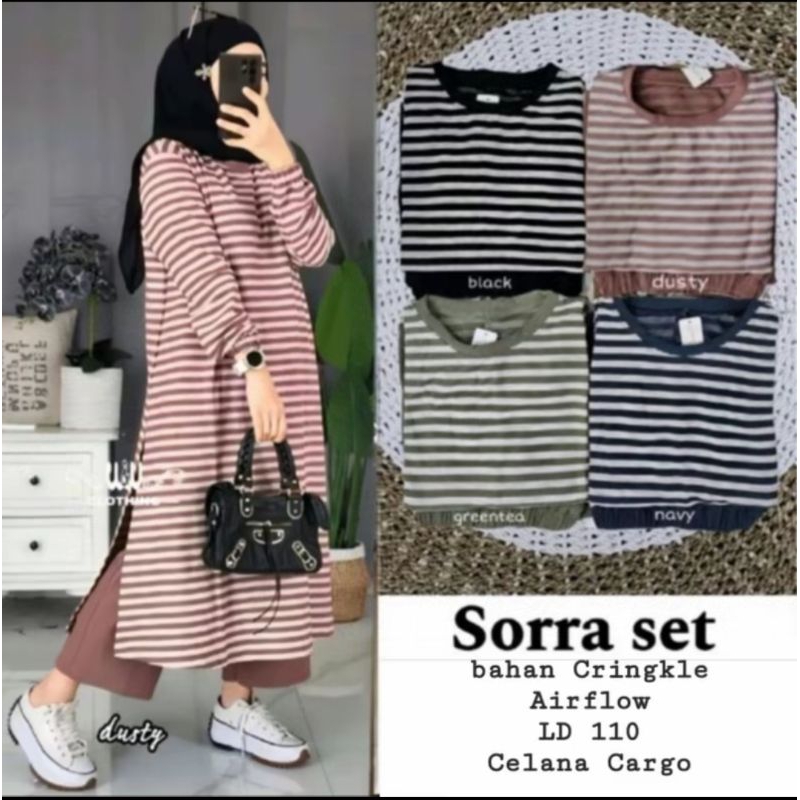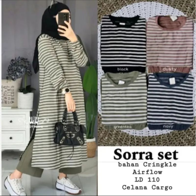 SORRA MUSLIM ผู้หญิง SALUR TUNIC ชุดแขนยาว // LONG TUNIC SETRIP COMBINATION CRINGKLE AIRFLOW